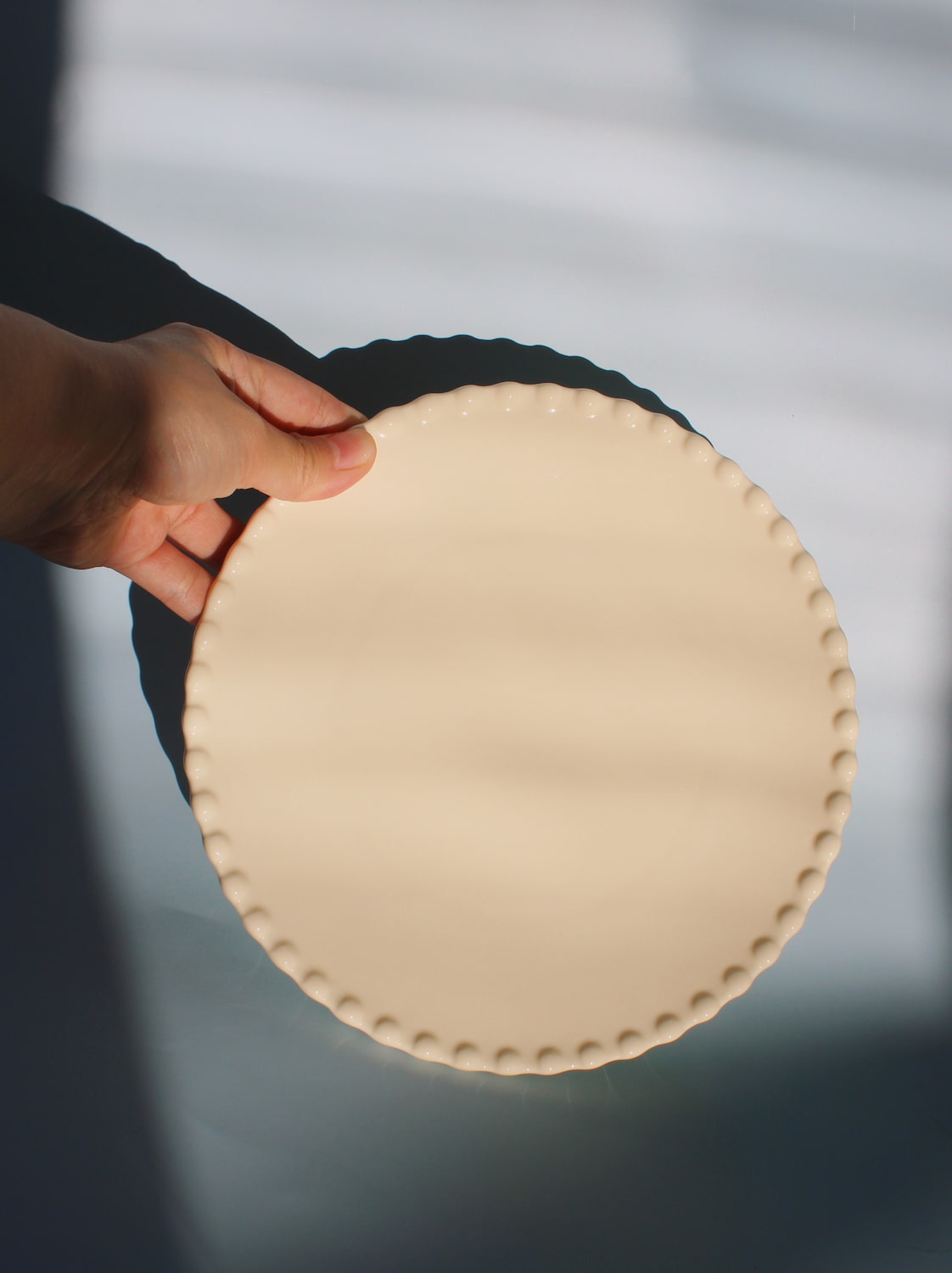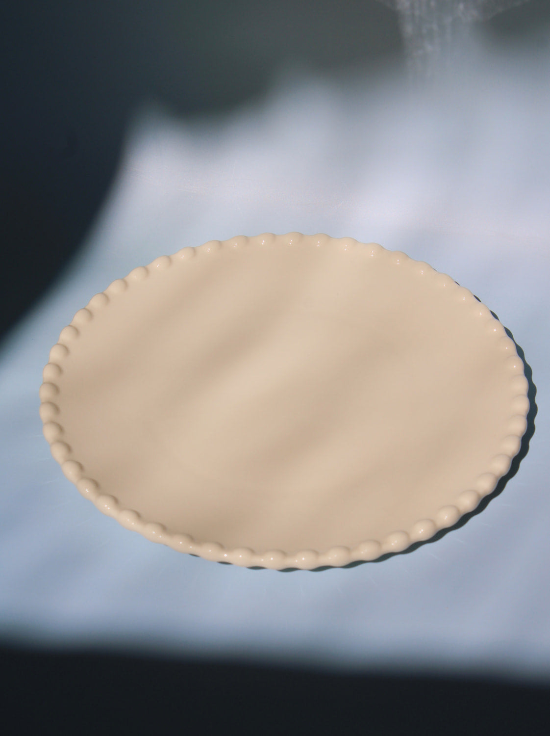 Ručně vyrobená keramika s mléčnou glazurou a korálkovým okrajem