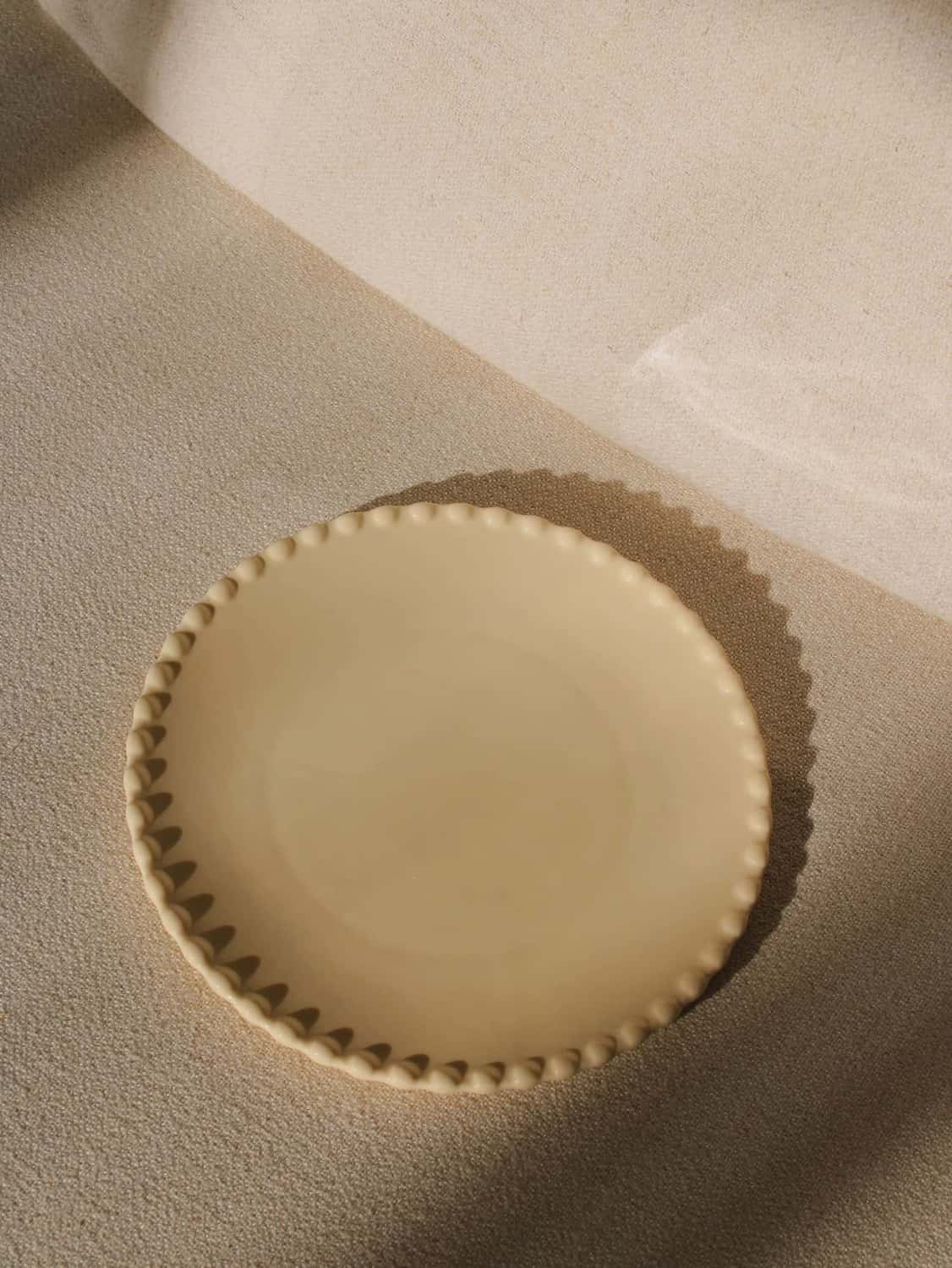 Talíř Clémentine nabízí tichou romantiku s hladkou mléčnou glazurou a jemným korálkovým okrajem, ideální pro pečivo, ovoce nebo drobné pochoutky. V kombinaci s ním dodává Talíř Élodie jemný záblesk tepla díky své máslově žluté glazuře a okrajům připomínajícím okvětní lístky, což je ideální pro croissanty, dort nebo jednoduchý krajíc toastu.
