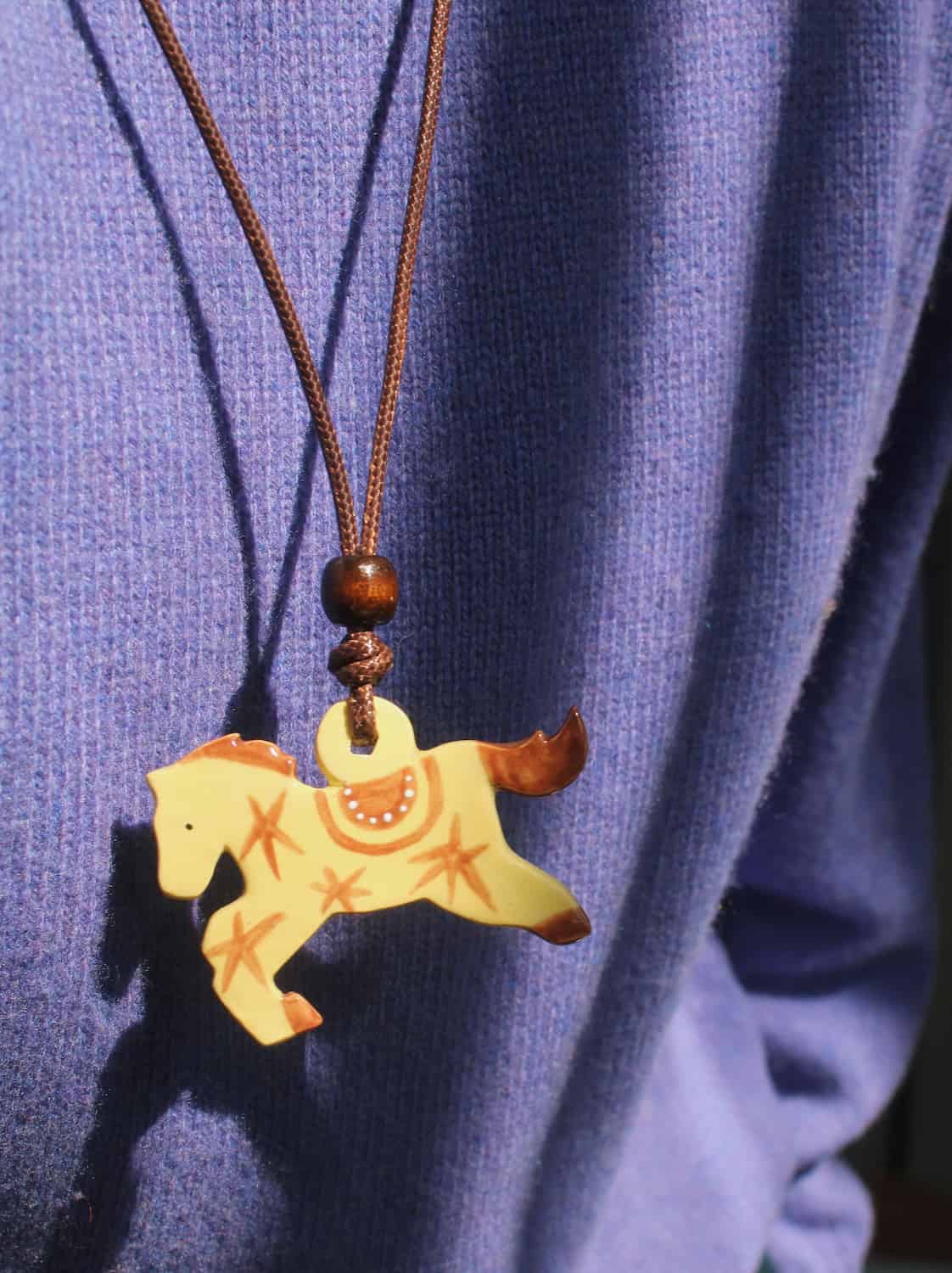 Designet til at bæres som en keramisk halskæde-charm sidder Pony let mod huden og tilføjer et blødt interessepunkt til hverdagens outfits. Det fungerer lige så godt lageret med andre halskæder som alene, og bringer en stille nostalgi uden at føles kostumeret.