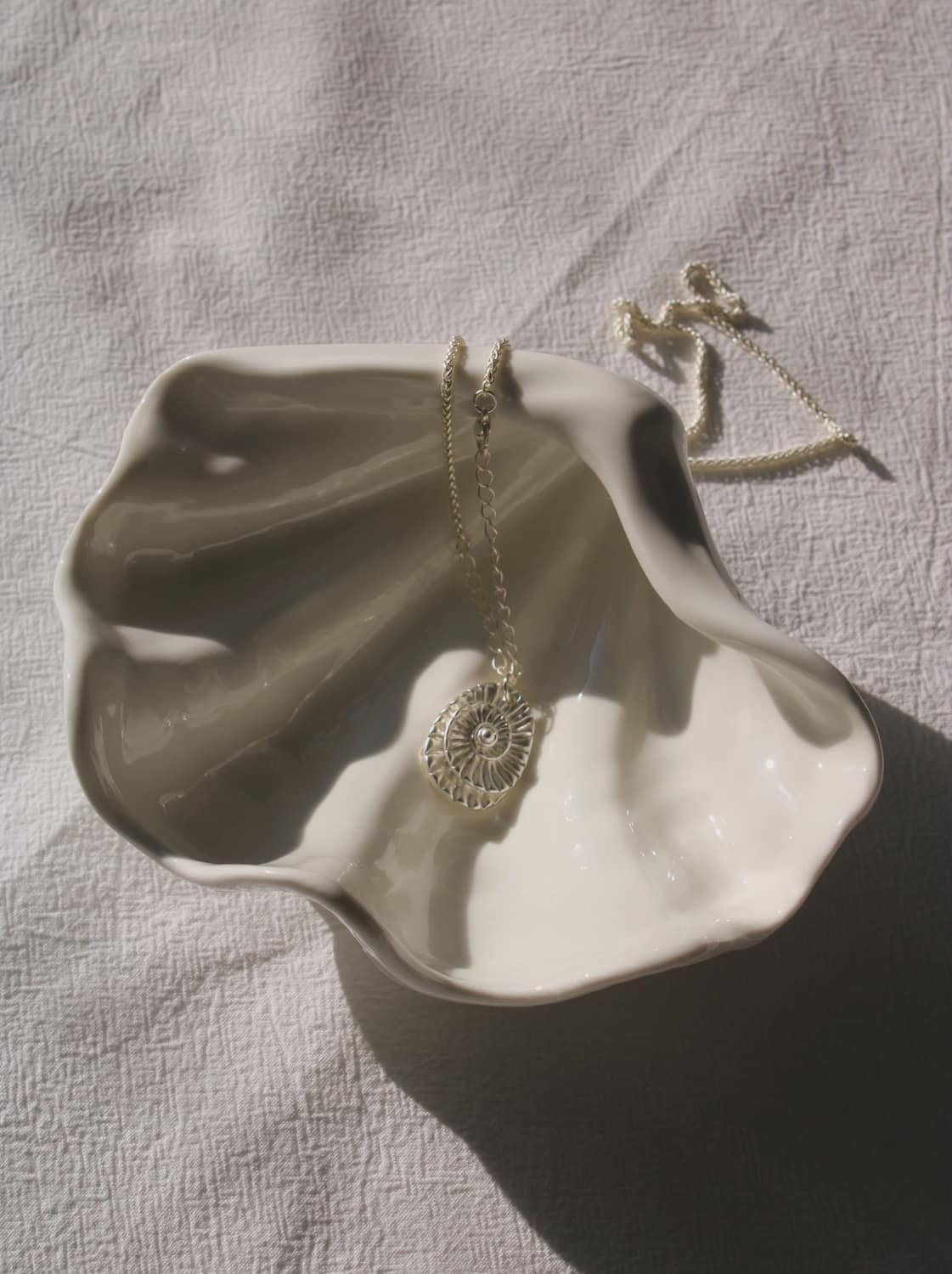 Le plat coquillage Aureis capture la douce poésie de la mer sous forme de céramique. Sa silhouette fluide et organique imite les courbes délicates d'un coquillage, transformant même l'usage le plus simple en un objet unique. Utilisez-le comme petit plat de service pour vos fruits, desserts ou sauces, ou laissez-le s'exprimer comme un fourre-tout sculptural pour vos bijoux, clés ou autres trésors : sa polyvalence fait partie intégrante de son charme. Avec sa douce finition ivoire et sa brillance subtile, Aureis apporte une touche d'élégance côtière à votre table, étagère ou table de chevet.