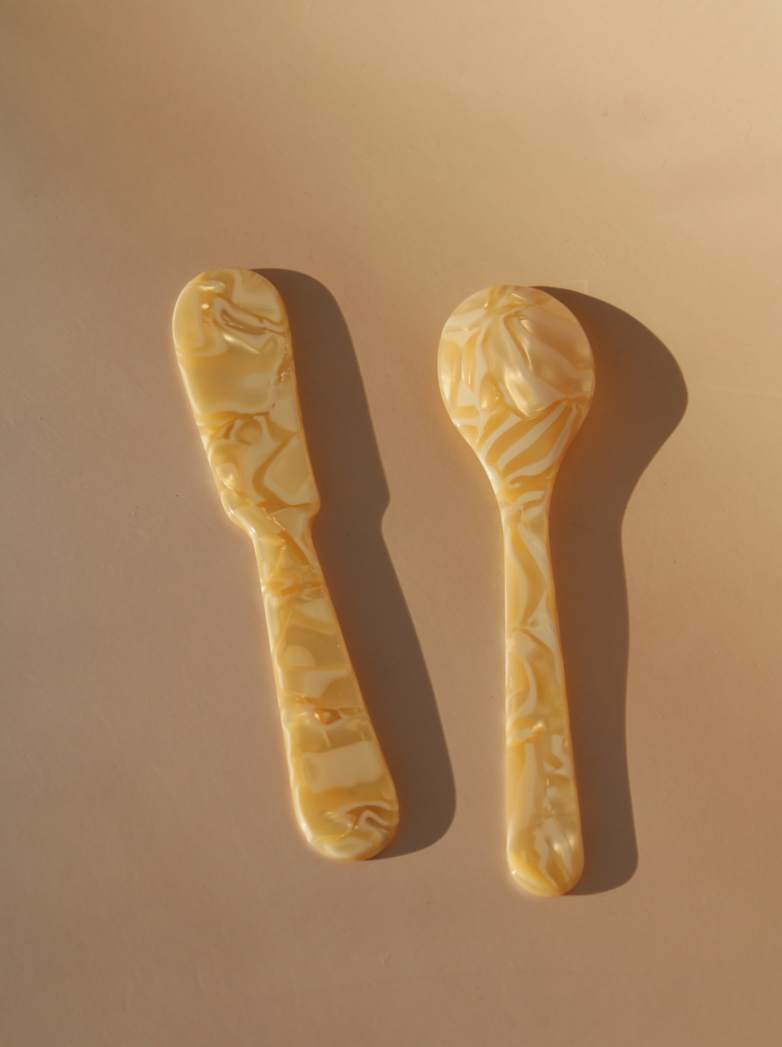Le mini-set Luna apporte une touche douce et lumineuse à vos rituels quotidiens. Fabriqué en acrylique léger avec un motif marbré onirique, ce petit duo couteau et cuillère est parfait pour servir desserts, tartinades ou condiments avec élégance et simplicité.