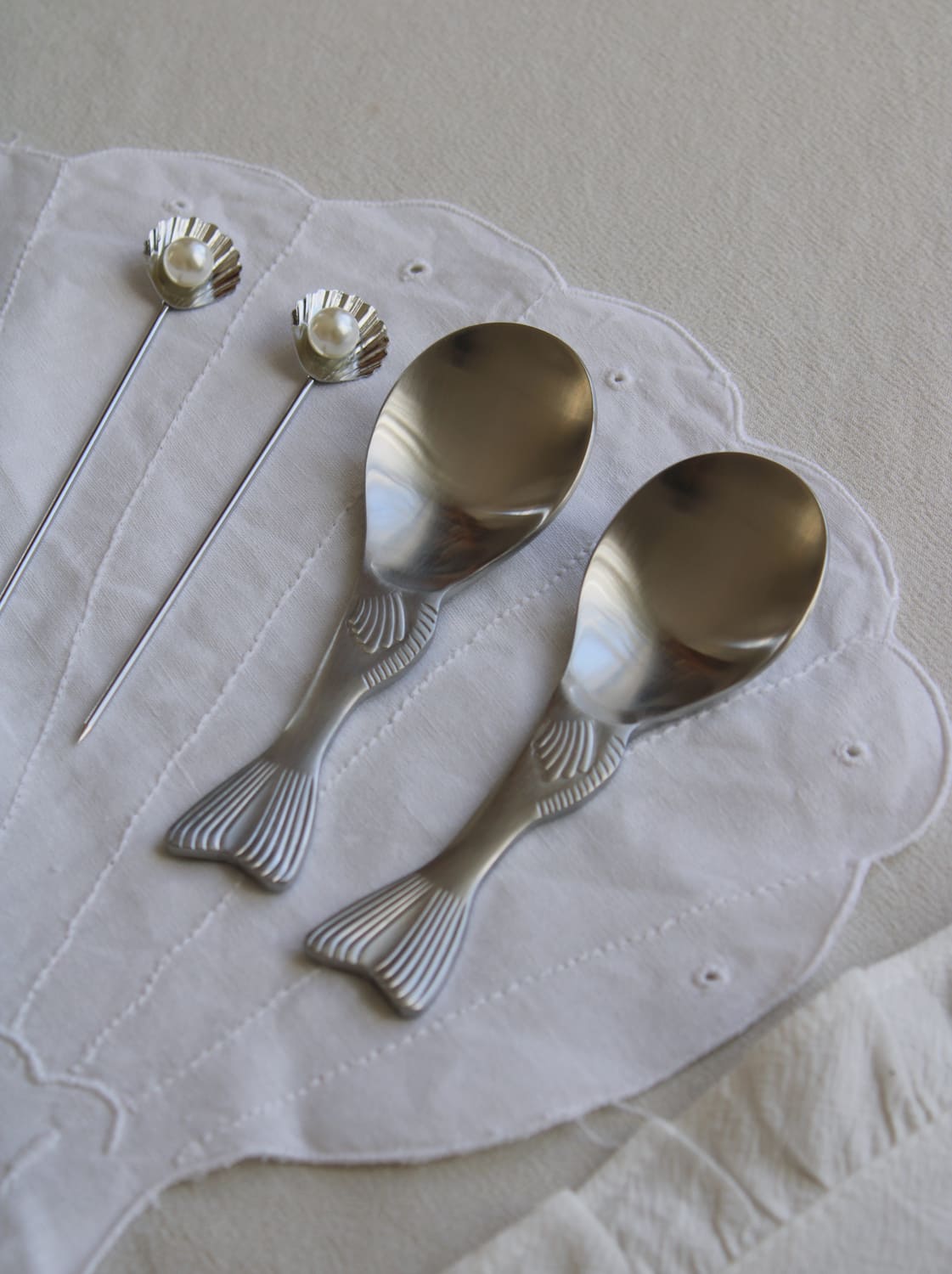 Apportez une touche ludique de la mer à votre table avec la cuillère Pisca, une pièce en acier inoxydable magnifiquement conçue en forme de délicate poignée en queue de poisson. Ses subtils détails d'inspiration marine et sa finition polie la rendent aussi charmante que pratique : parfaite pour déguster des desserts, préparer un café ou ajouter une touche marine à votre table.