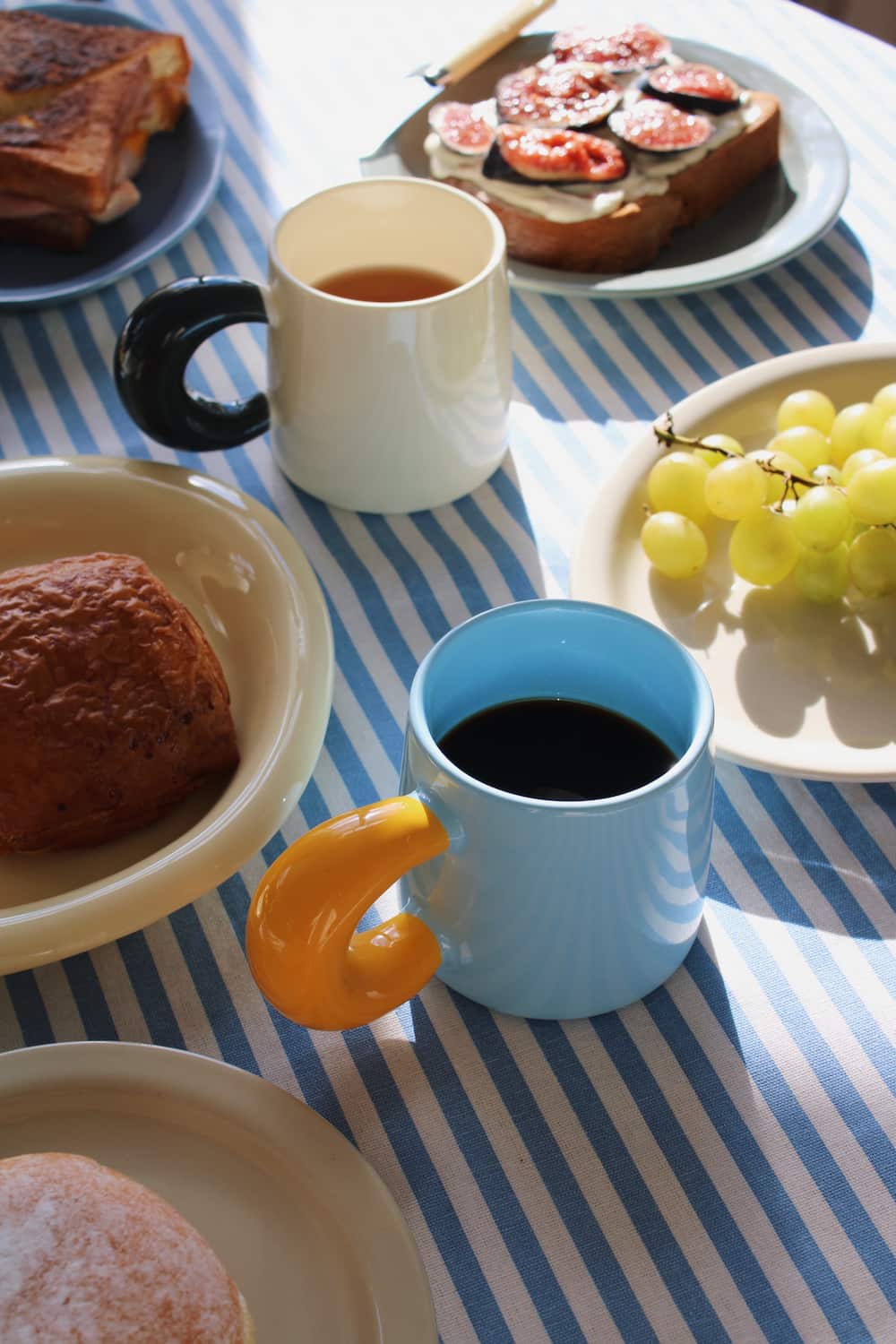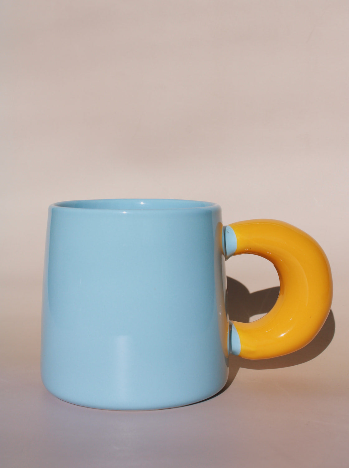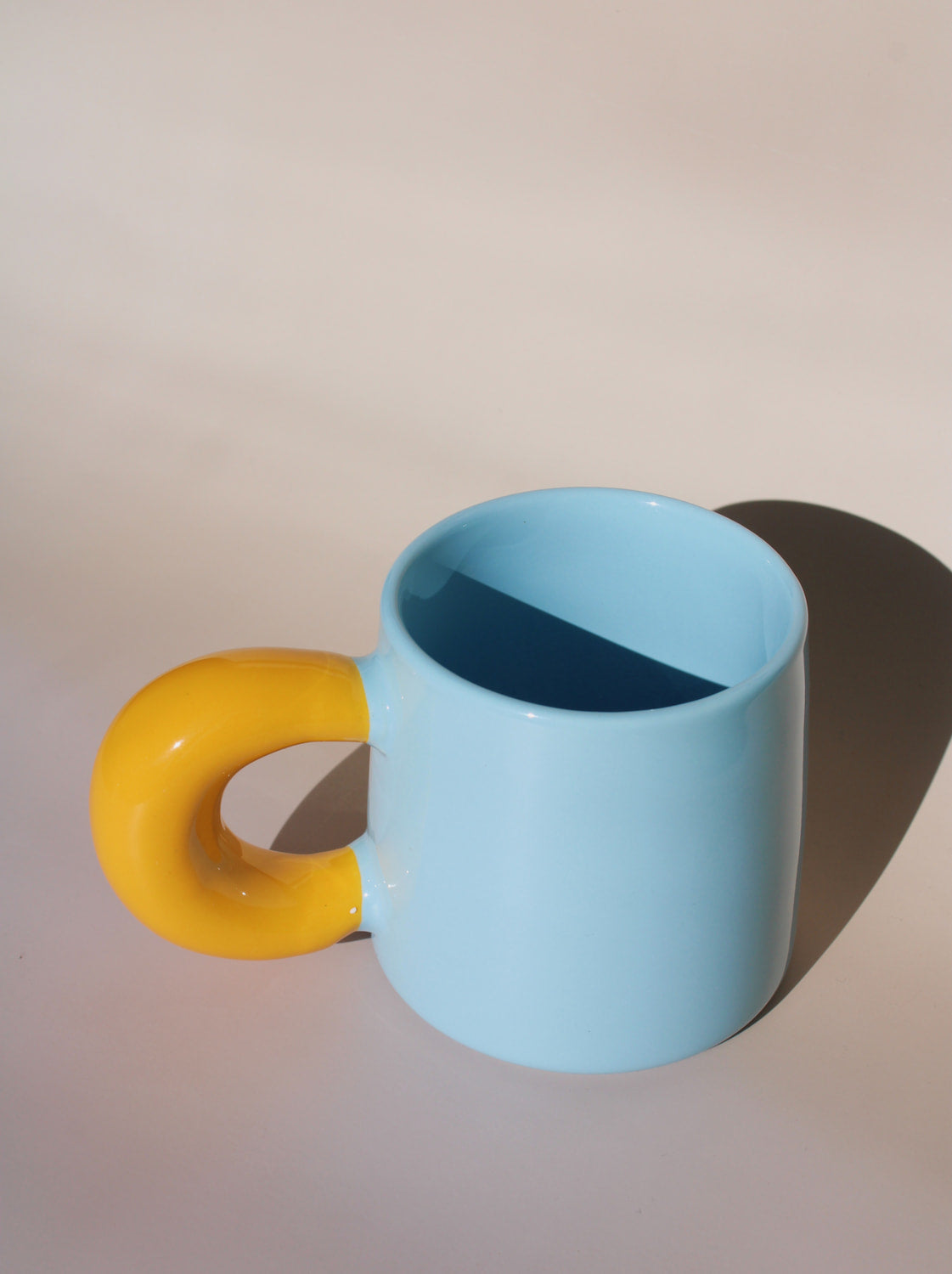 A friss és modern Kai bögre puha kék testét egy merész sárga fogantyúval ötvözi a játékos, színblokkoló dizájn érdekében. A kontrasztos színek vizuális érdeklődést keltenek, míg a kényelmes arányok tökéletessé teszik a napi kávérituáléhoz. Ez a modern darab tiszta vonalaival és átgondolt részleteivel vidám energiát visz a reggeli rutinba.