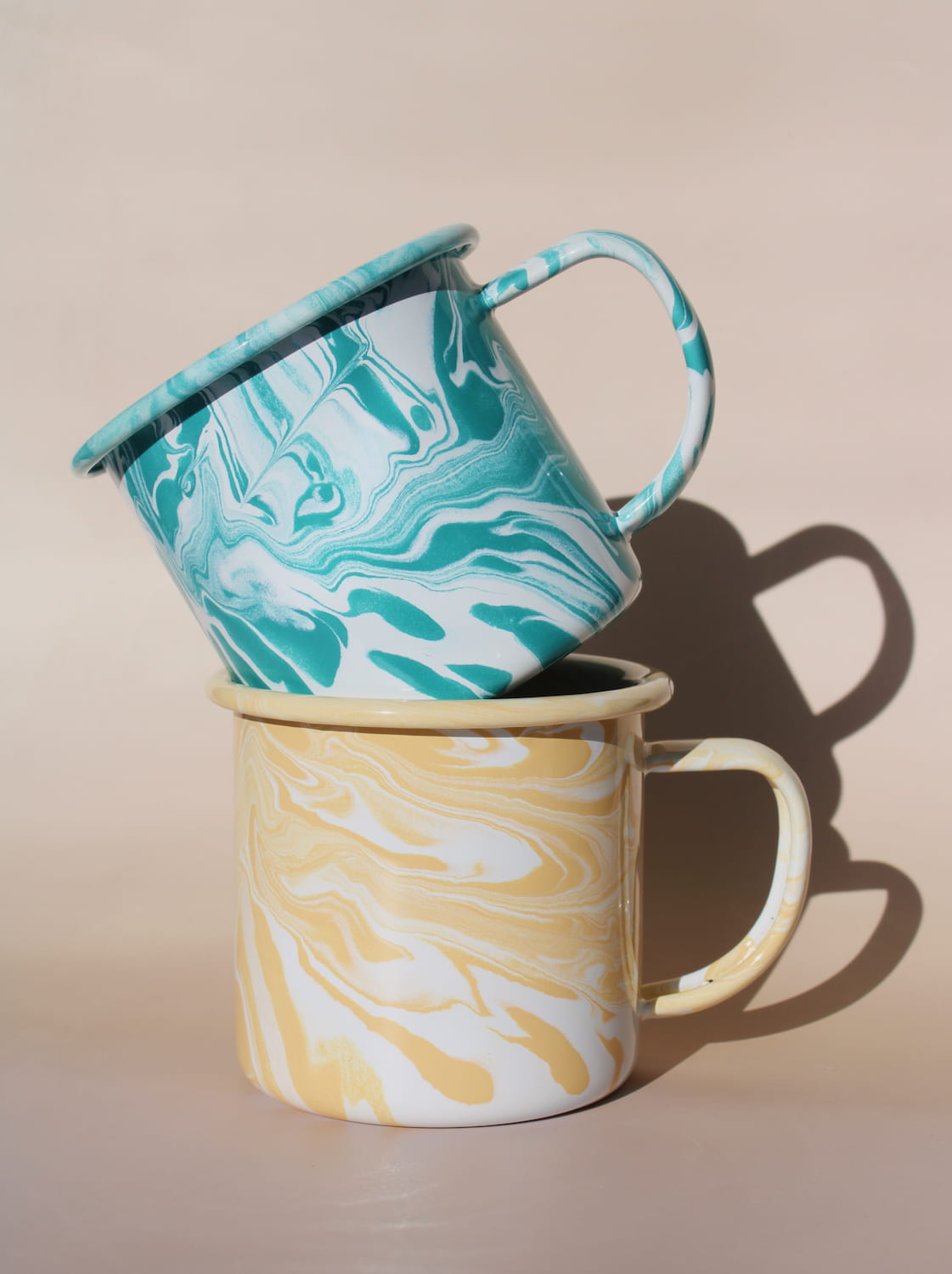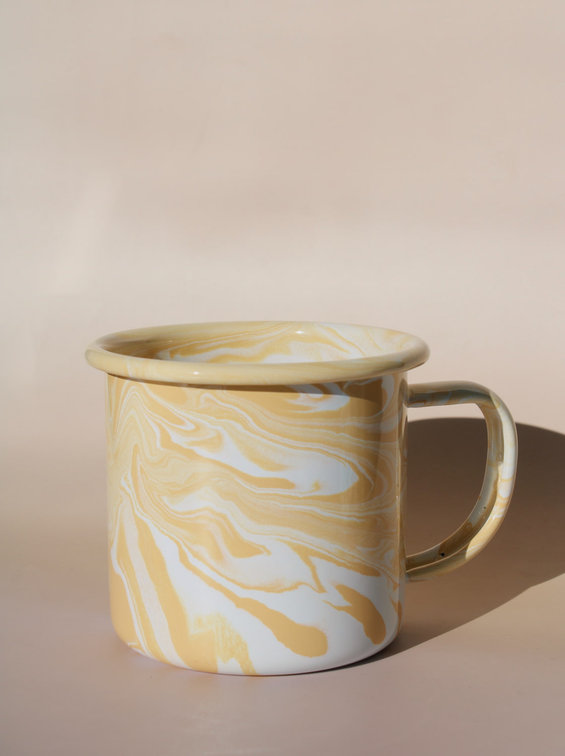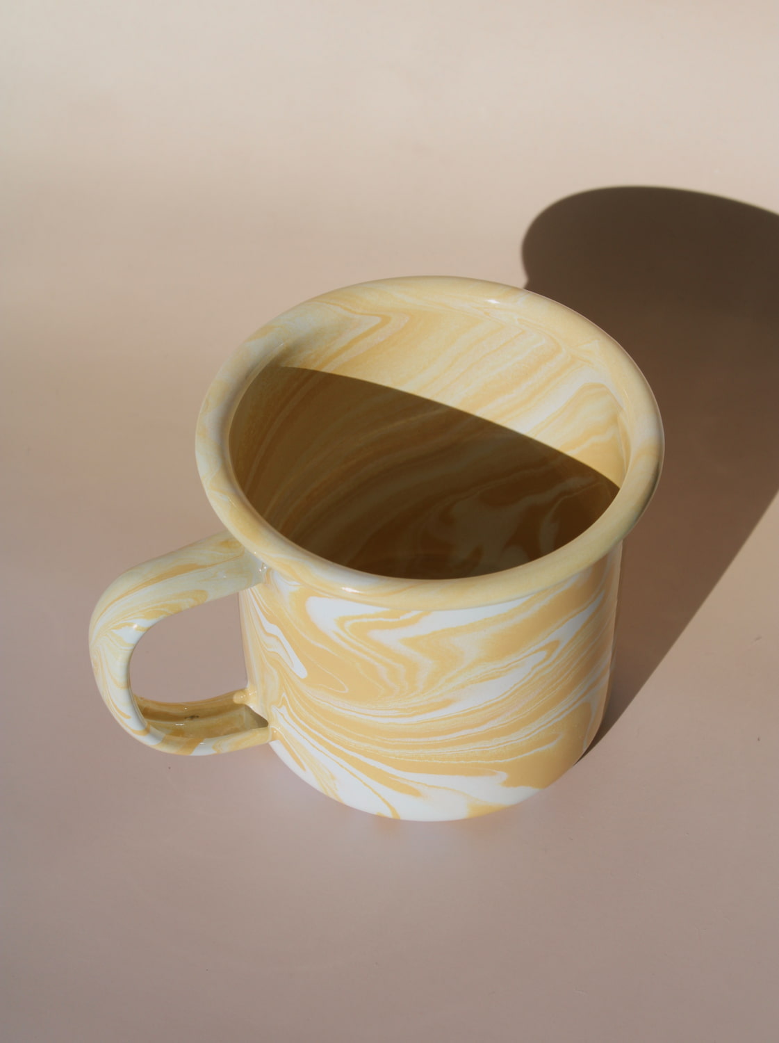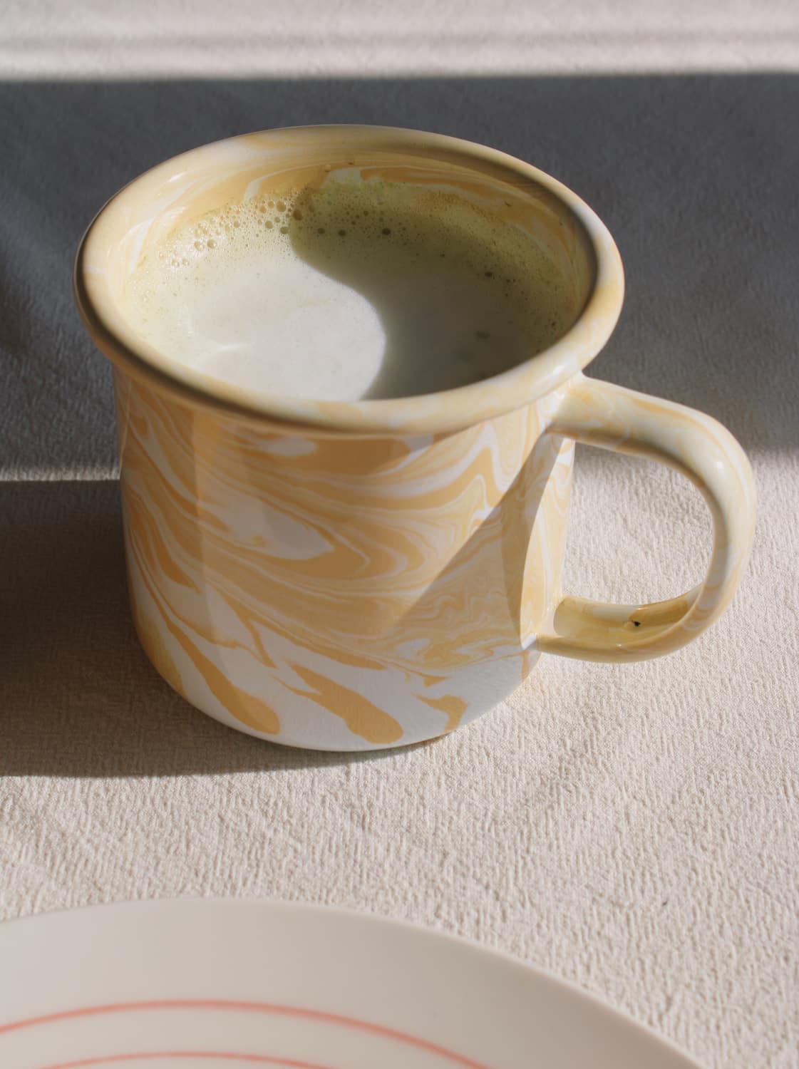 A meleg és fényes Sol bögre aranyszínű márványos örvényeiben rögzíti a napfényt. Minden darab egyedi, folyó mintákkal, amelyek a sima zománcfelületen táncolnak. Ez a kézműves bögre tökéletes a lassú reggelekhez és az elmélkedő kávézáshoz, kézműves eleganciát hoz a mindennapi rituáléba.