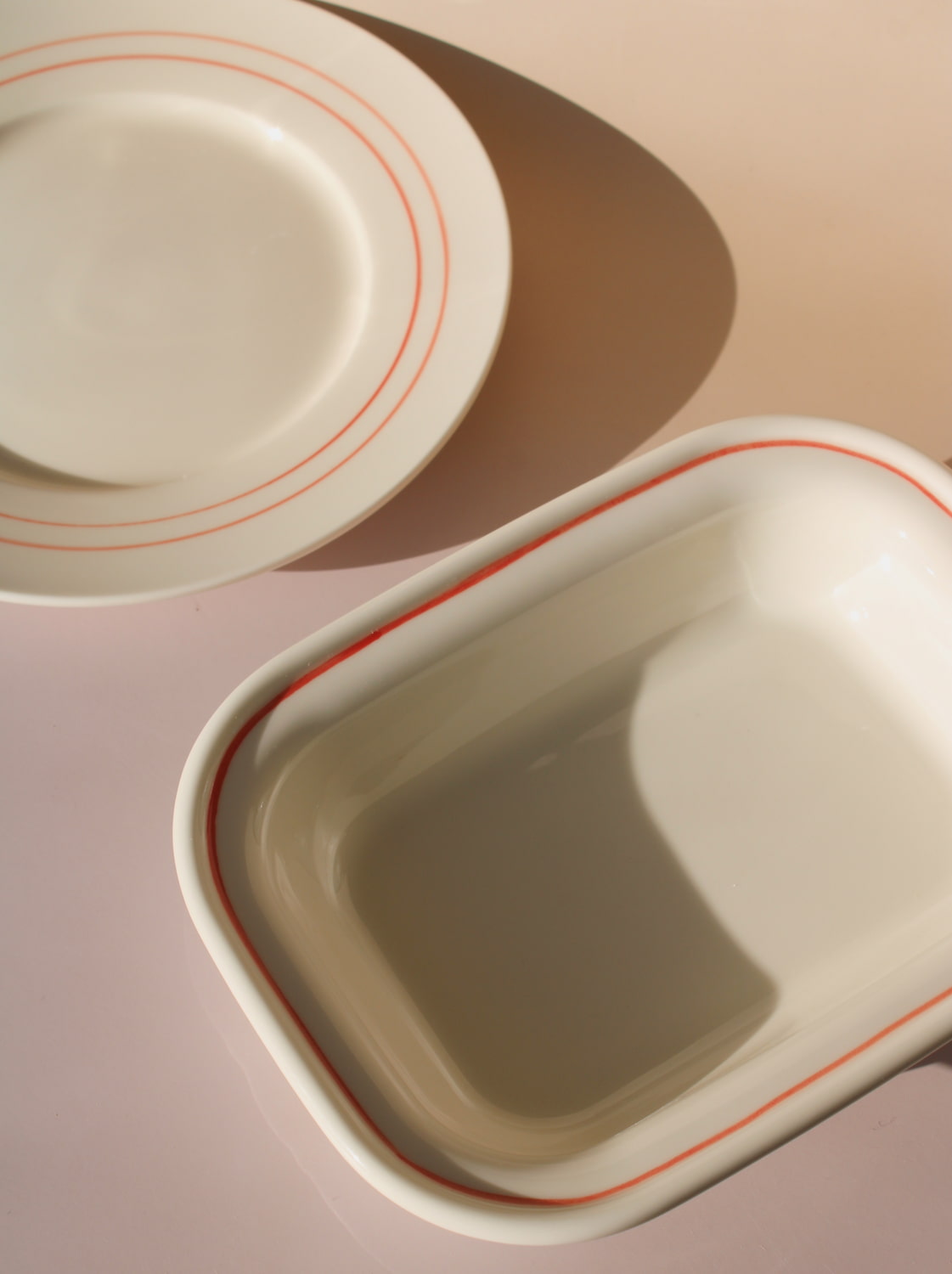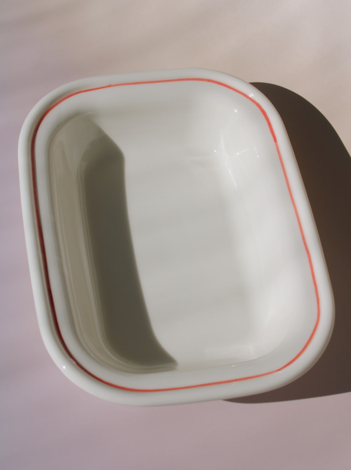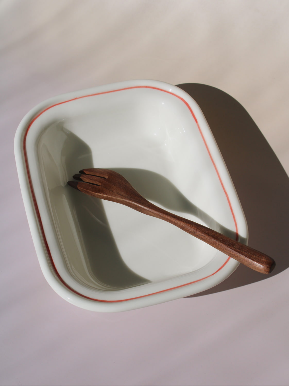 The Nori deep dish combines modern simplicity with everyday functionality. Its soft square shape and subtle red trim bring a touch of contemporary charm to your table, while the generous depth makes it ideal for serving sides, salads, or baked dishes.