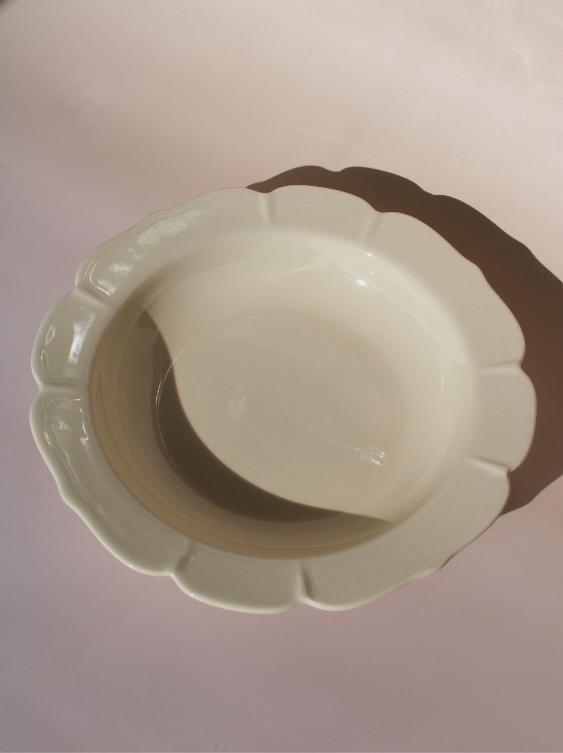 Graceful and versatile, the Serra dish features the same beloved scalloped edges in a deeper profile for soups, pasta, or generous servings. The romantic cream finish and flowing curves create a piece that's both functional and beautiful. This deeper dish brings gentle elegance to heartier meals while maintaining the sophisticated aesthetic of the Serra collection.