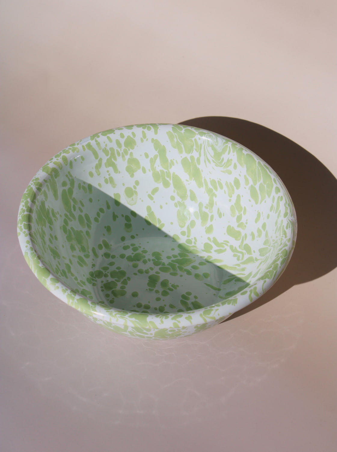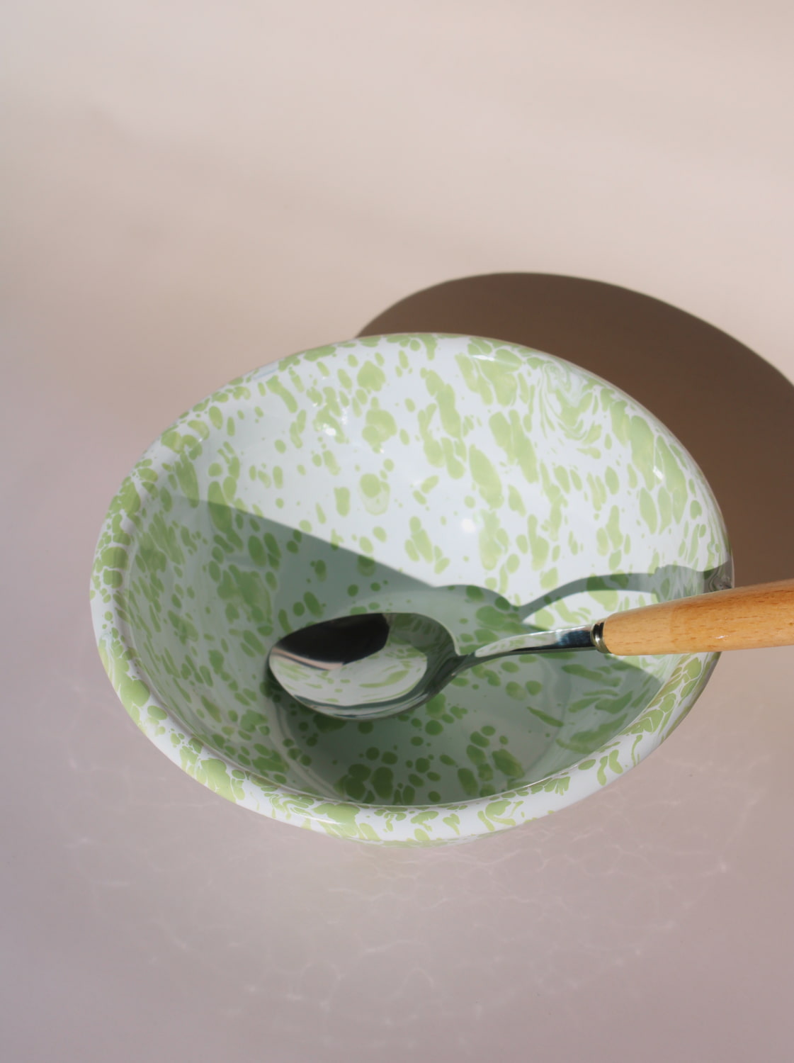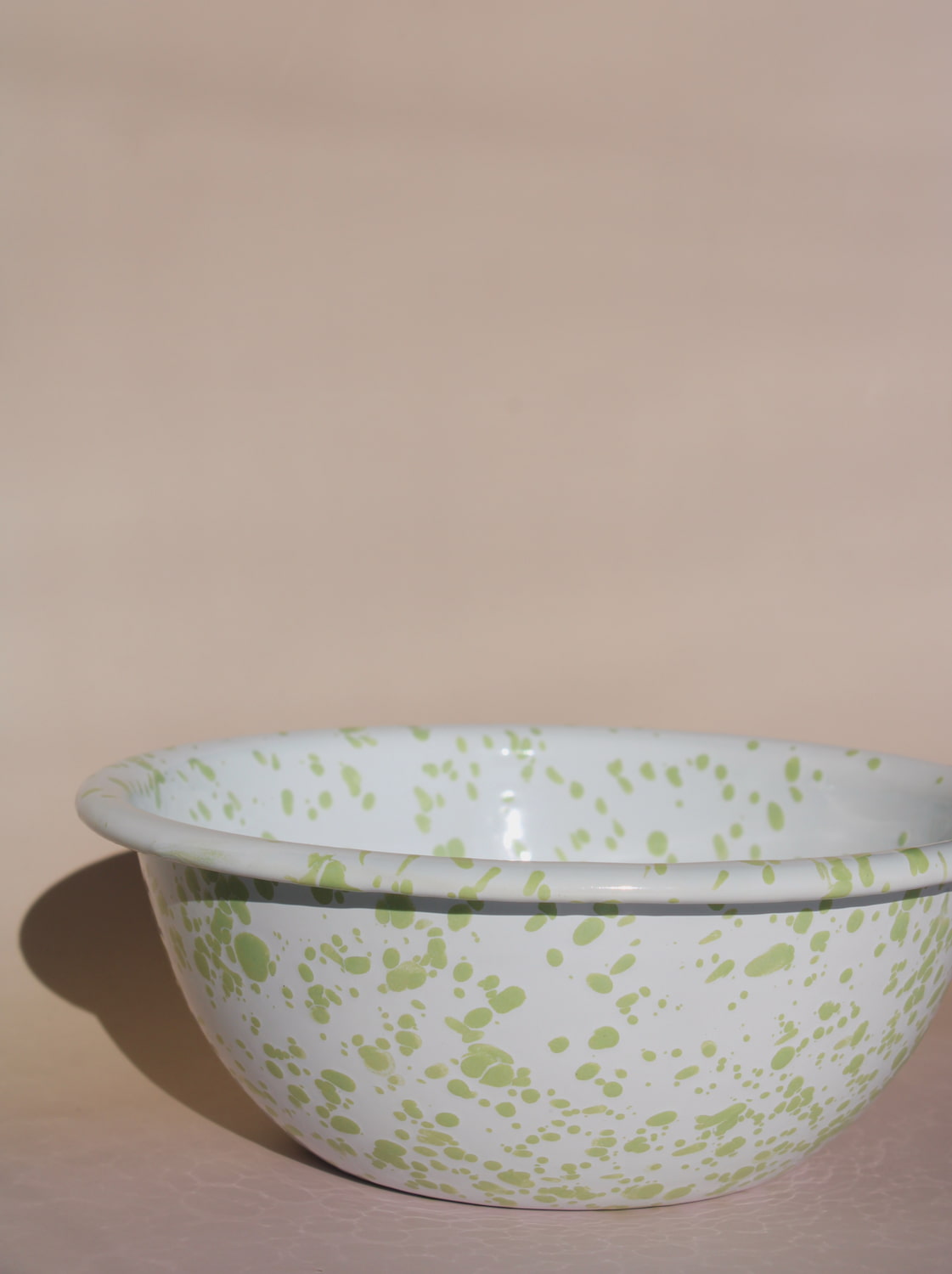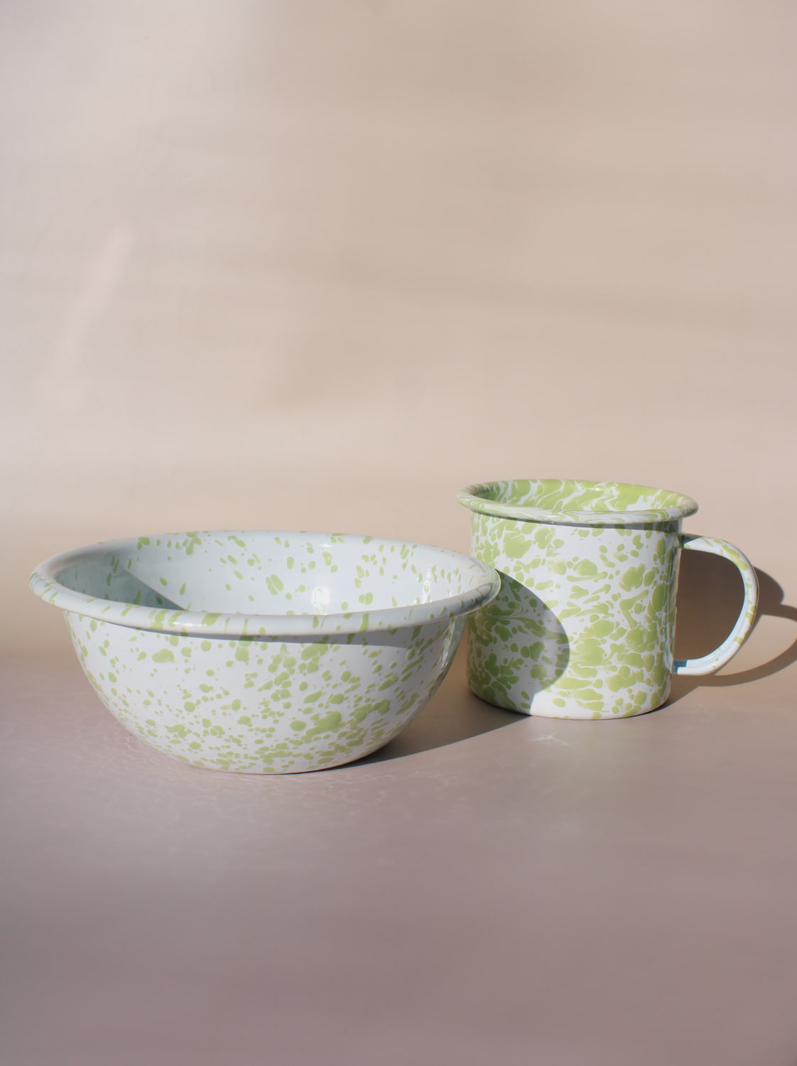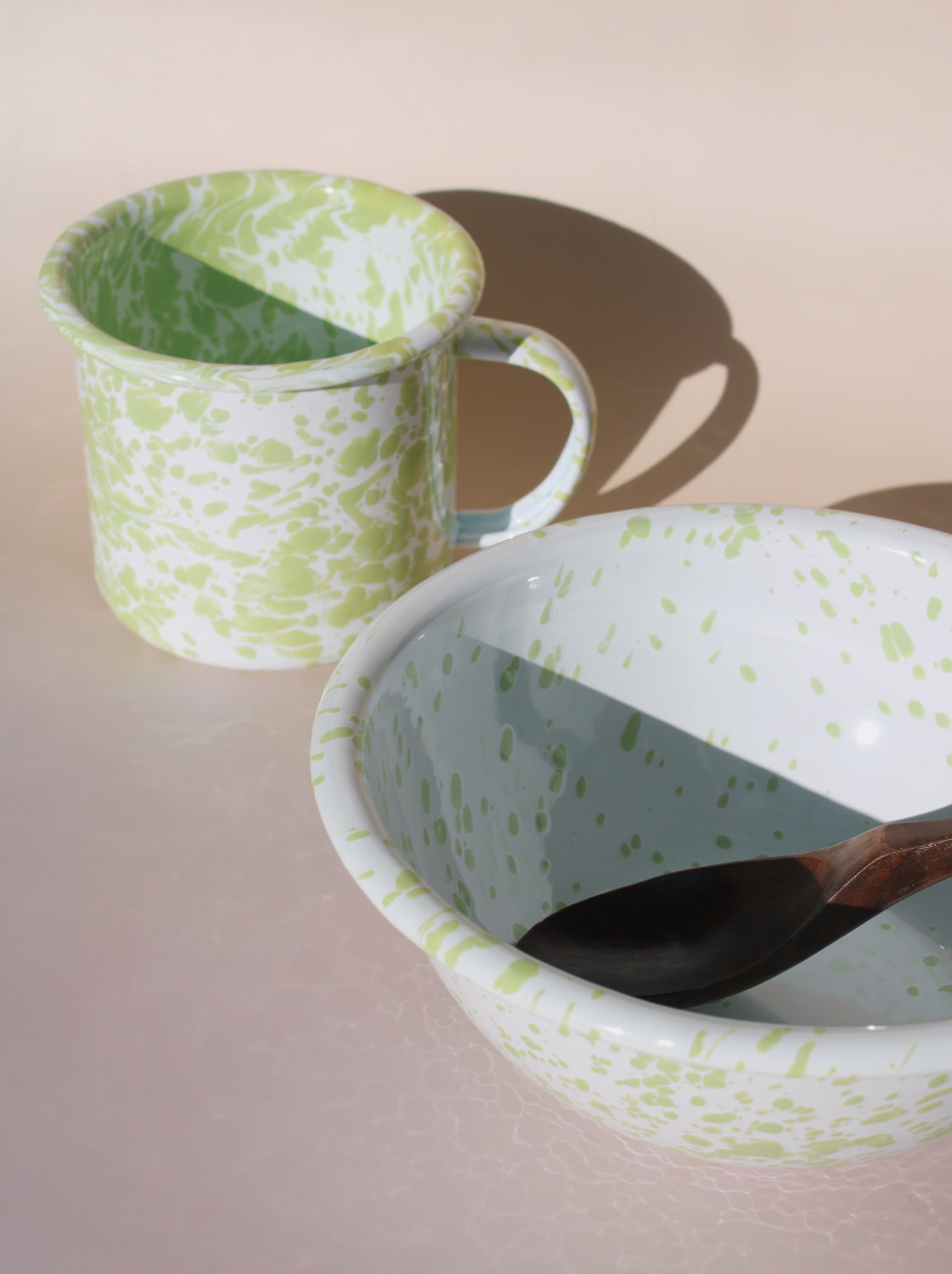 - Material: Esmalte salpicado à mão com padrão de respingos de verde