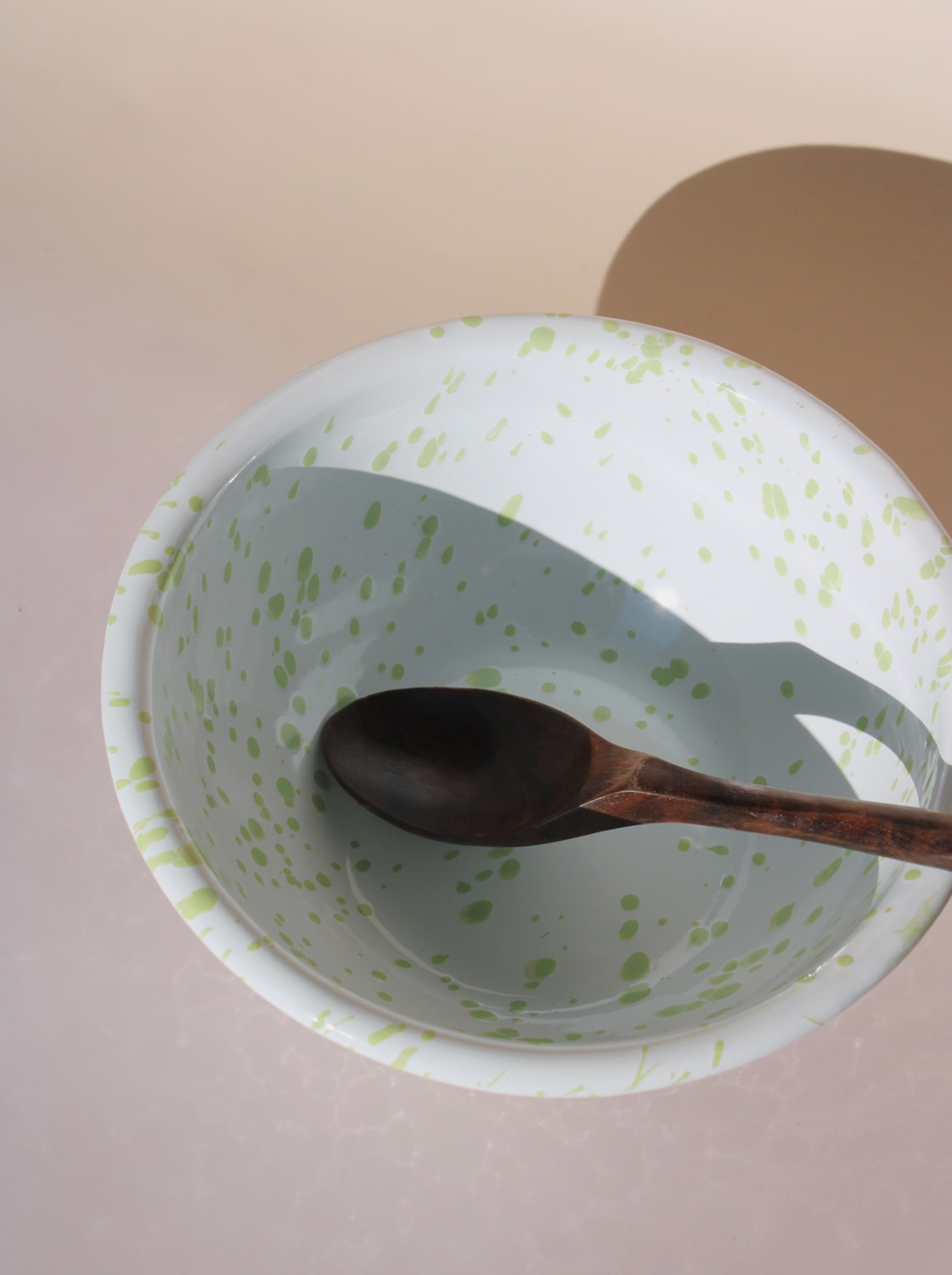 Sem esforço e elegância, a Tigela Clover apresenta padrões orgânicos salpicados de verde que conferem um caráter artístico à sua mesa. Cada peça esmaltada artesanal é única, com detalhes de respingos artísticos que criam interesse visual e charme. Disponível em duas densidades distintas de respingos para a sua estética preferida.