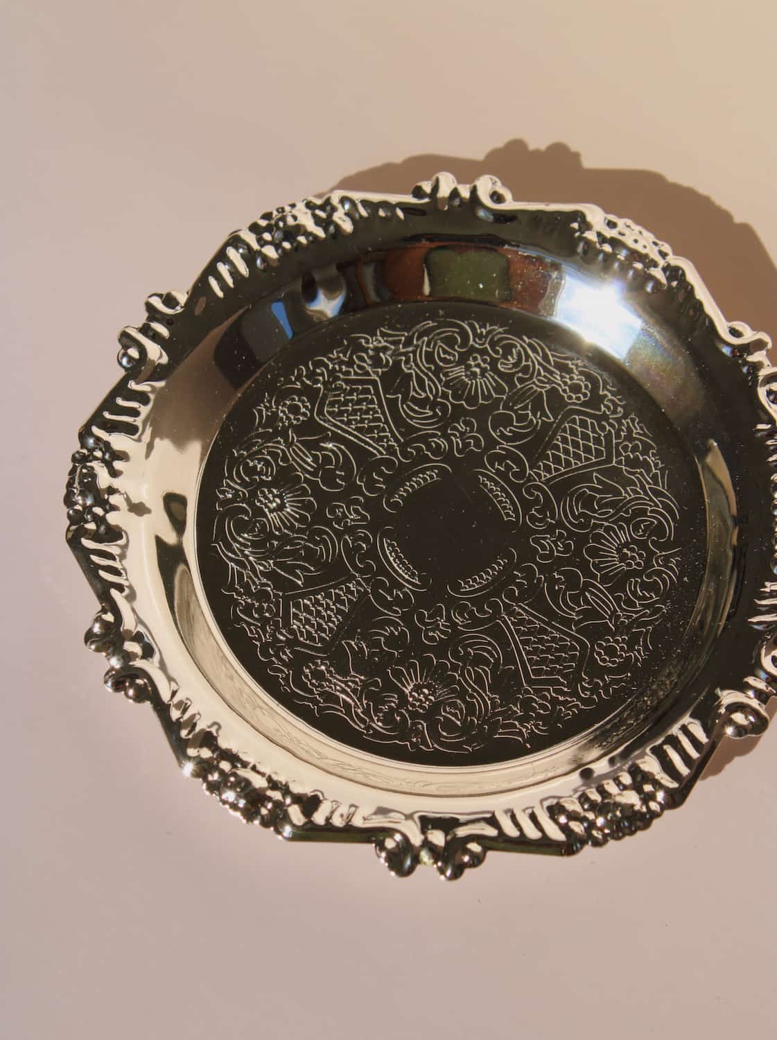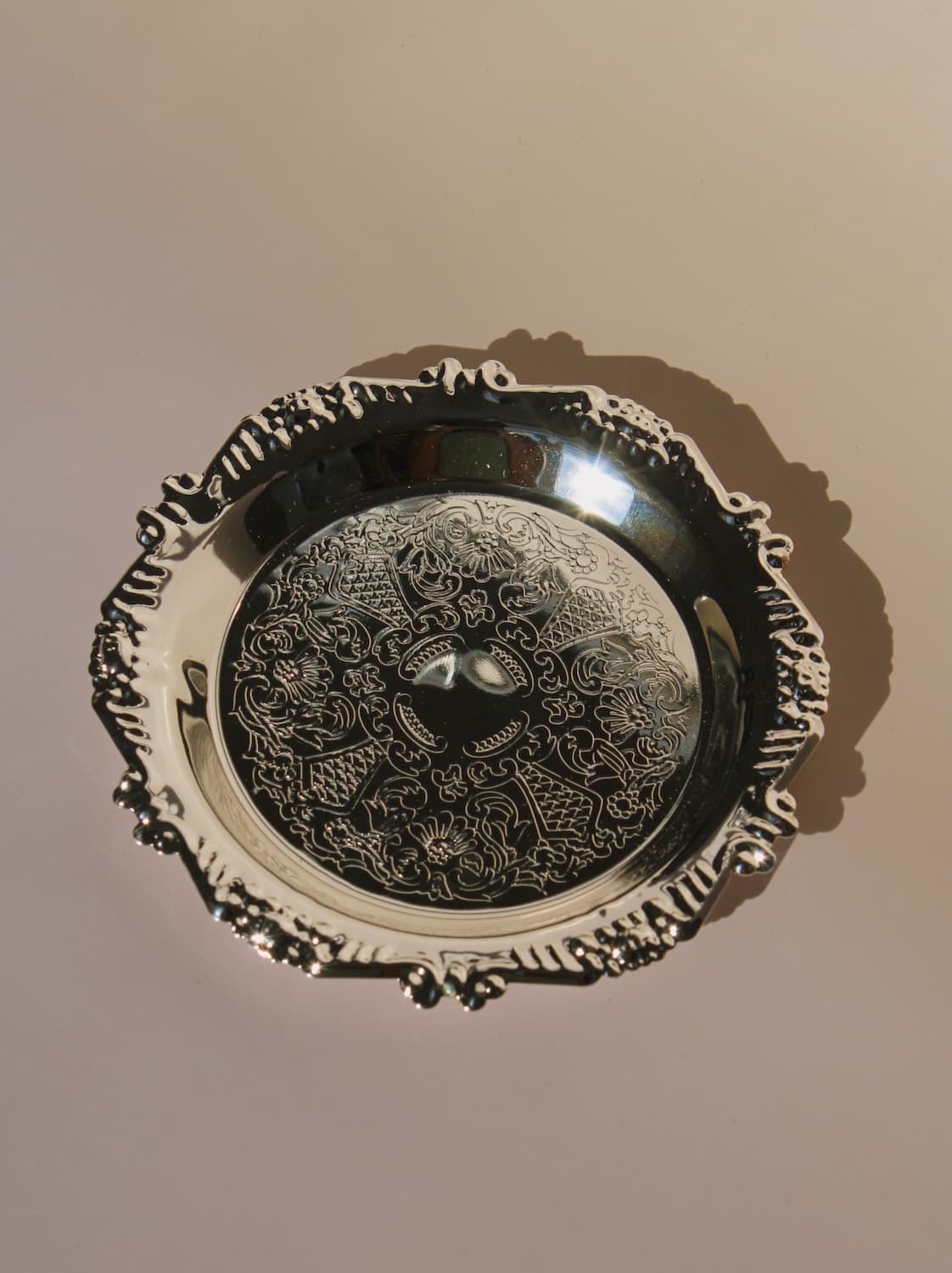 O prato de sobremesa Lacey Silver traz elegância vintage para sua mesa com suas bordas recortadas intrincadas e acabamento metálico brilhante. Feita em aço inoxidável durável, esta peça ornamentada é perfeita para servir sobremesas, exibir doces ou como um suporte decorativo para joias e pequenos tesouros.