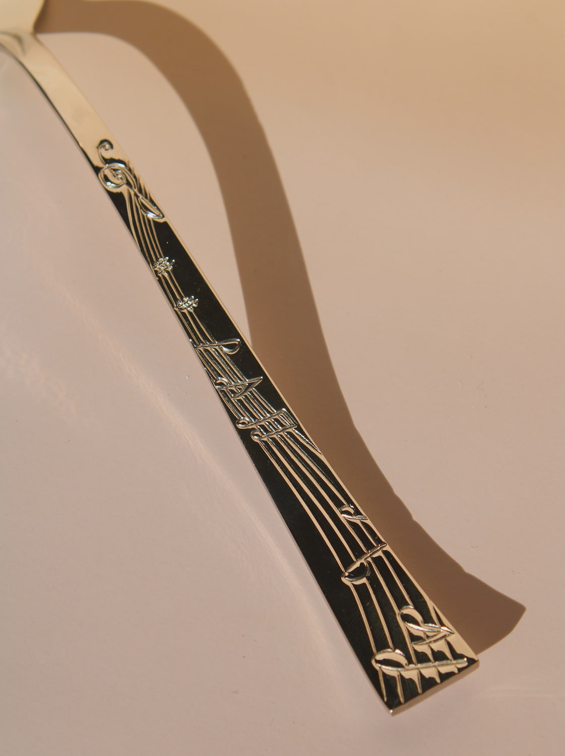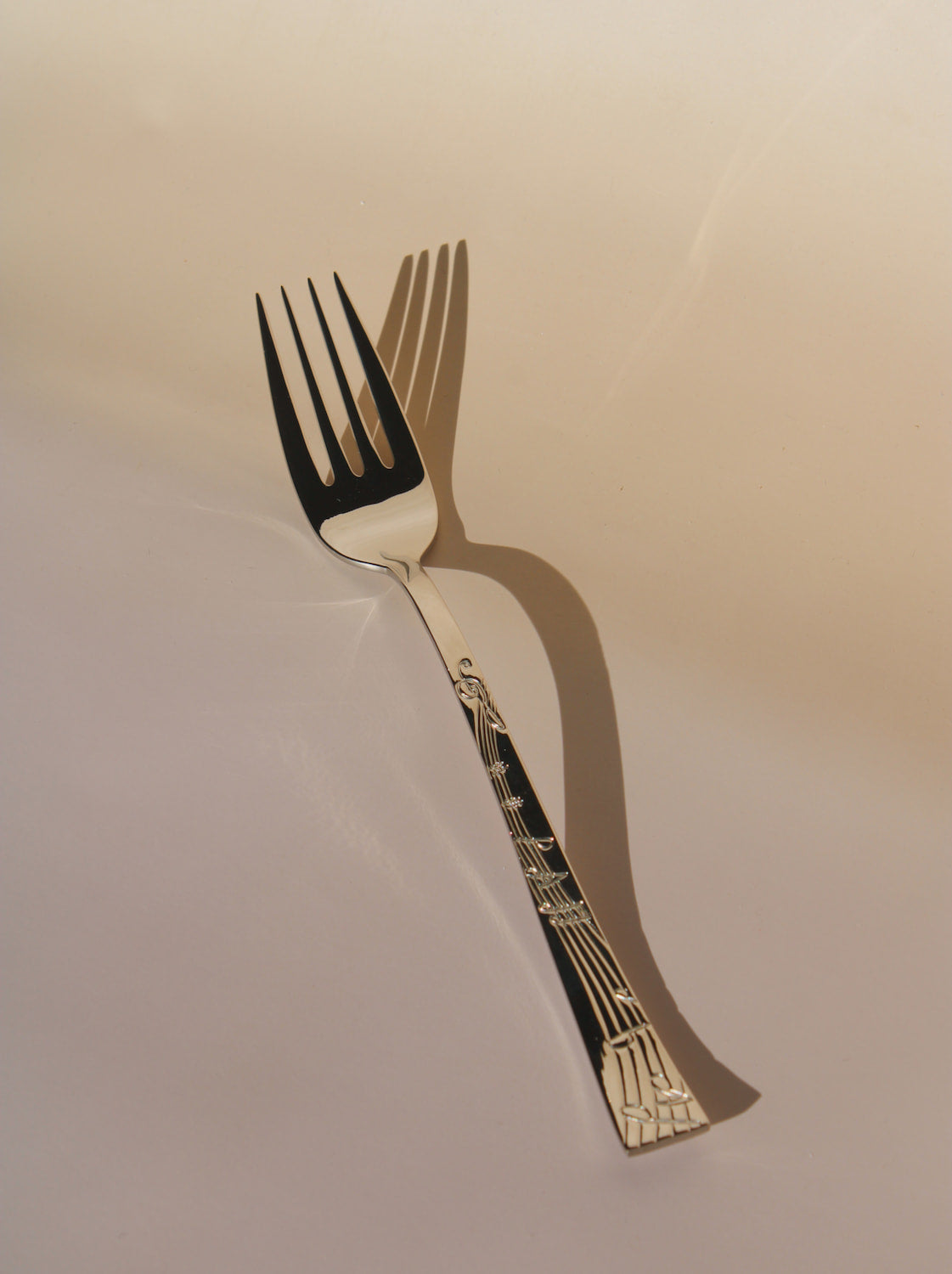 Feito em aço inoxidável premium, este garfo traz sofisticação à sua mesa, ao mesmo tempo que celebra a beleza da composição musical.