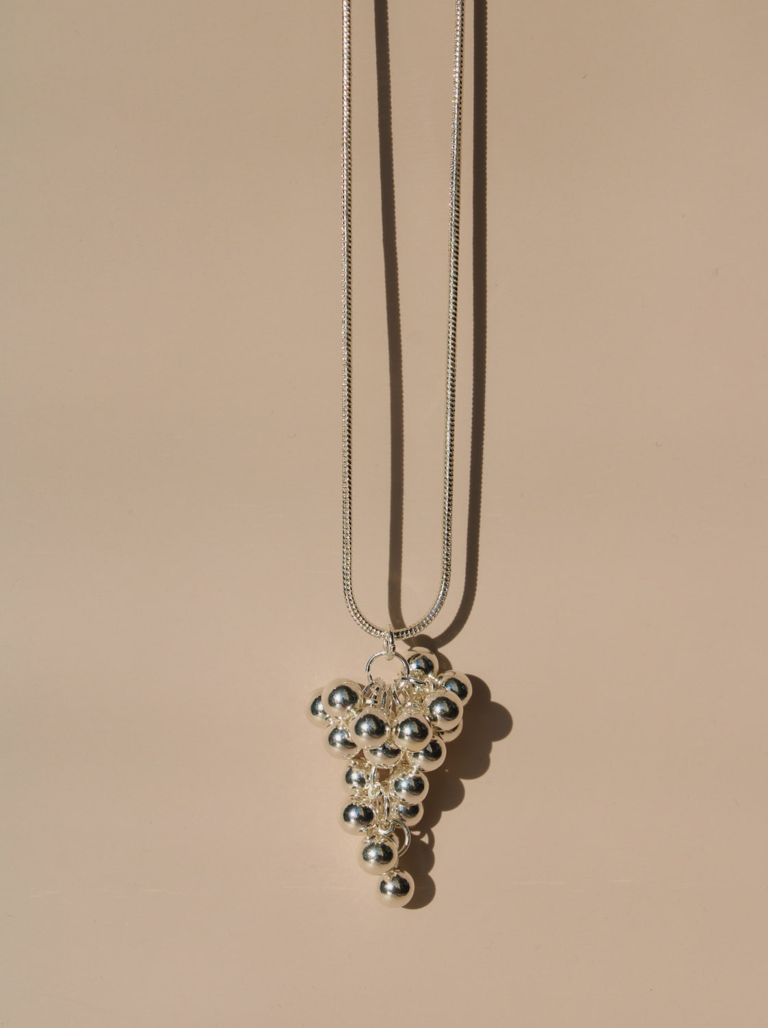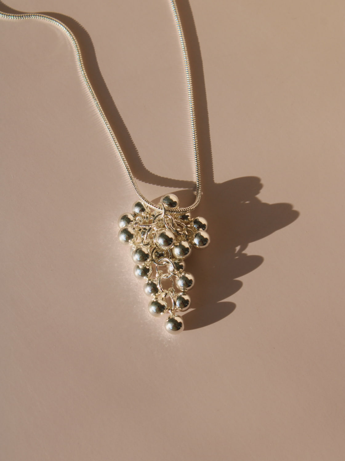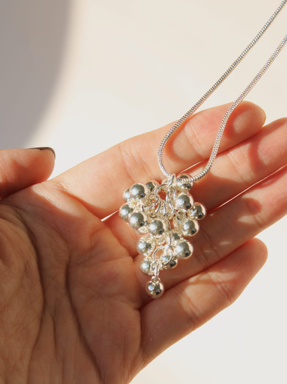 Inspirado nos delicados cachos de uvas maduras sob o sol do fim do verão, o Colar Uva traz um toque de elegância divertida ao seu visual do dia a dia. Feito em liga metálica de alta qualidade com acabamento prateado polido, seu design de contas em cascata captura a luz com beleza e se move suavemente com você.