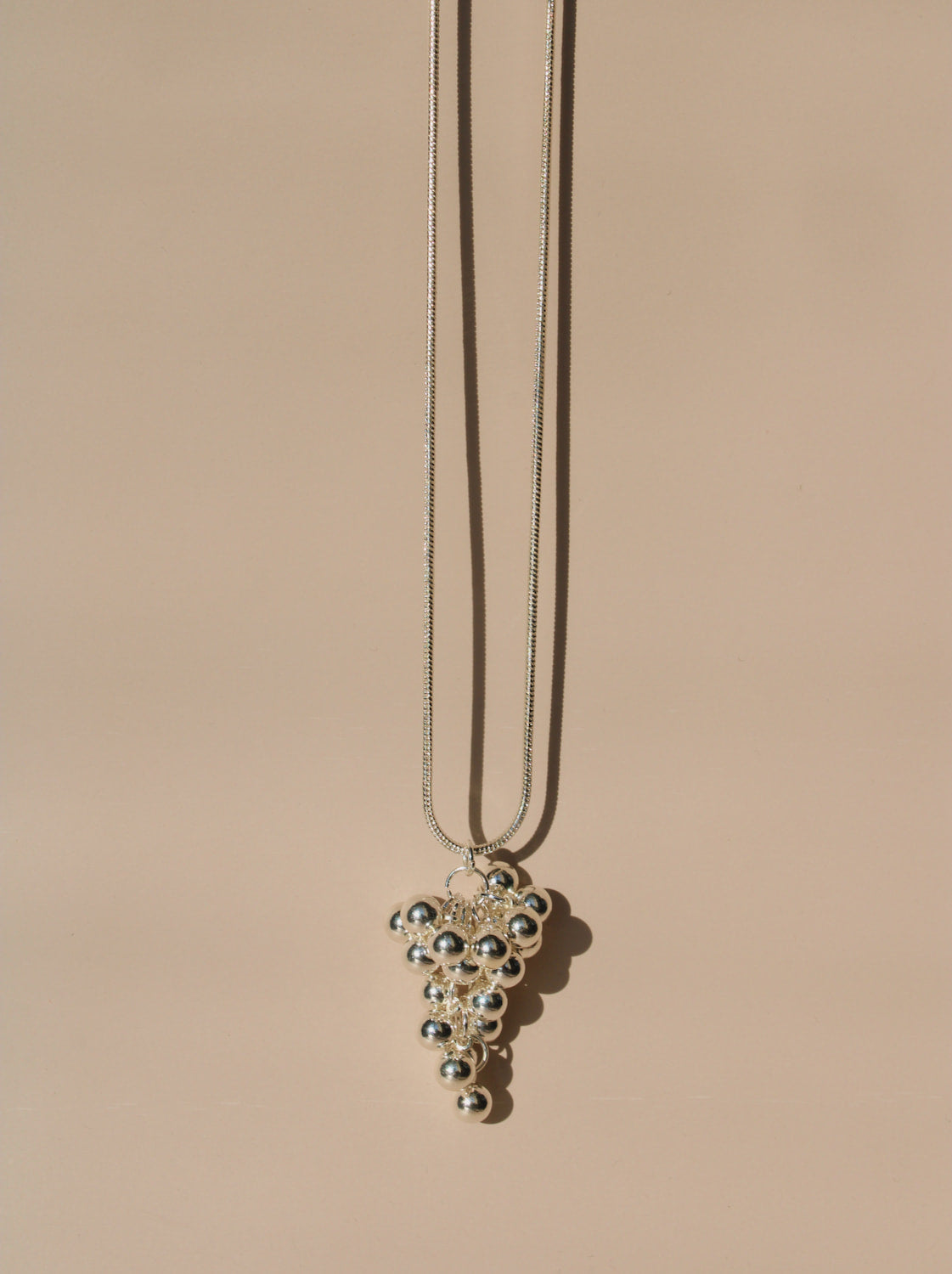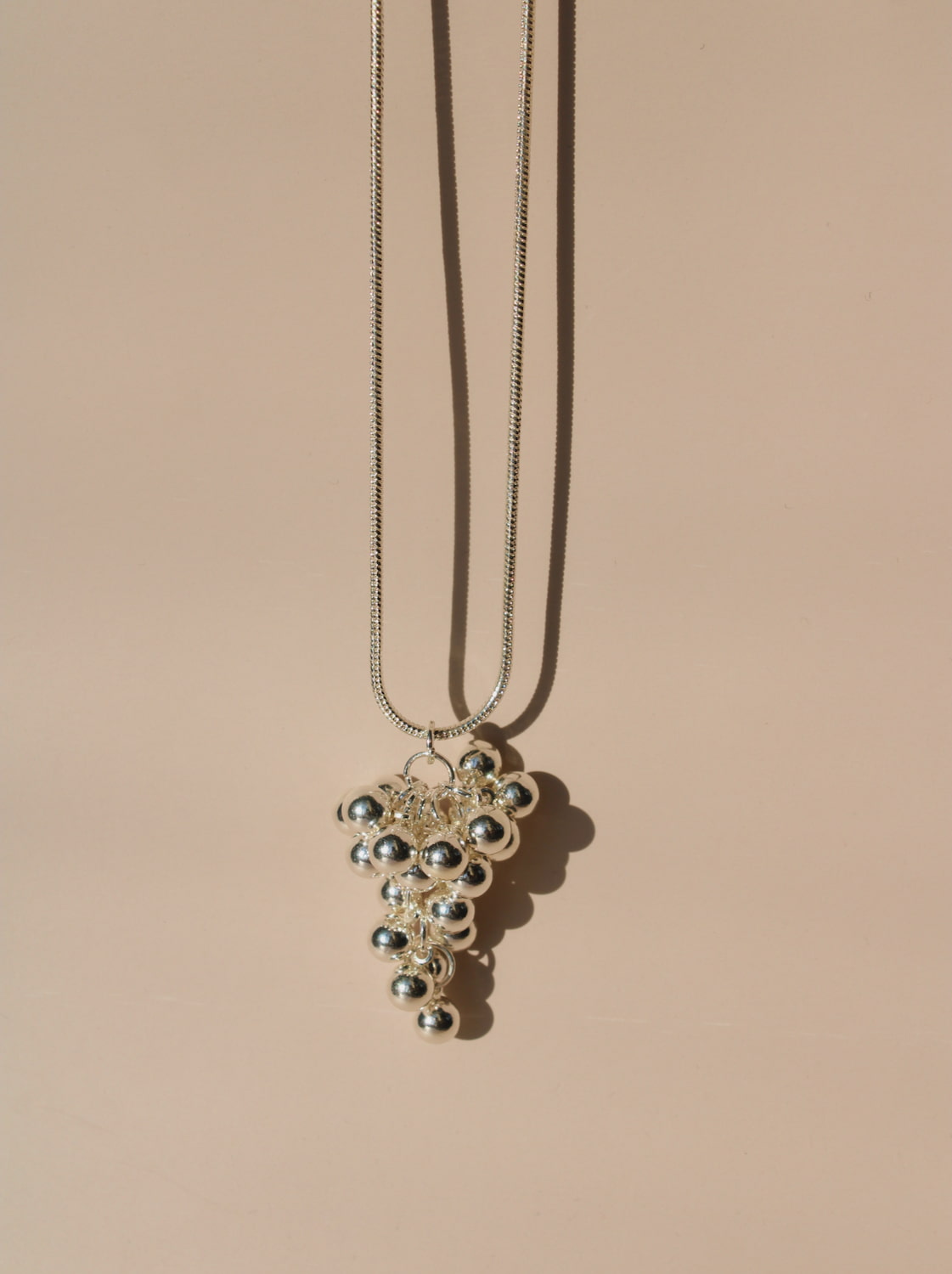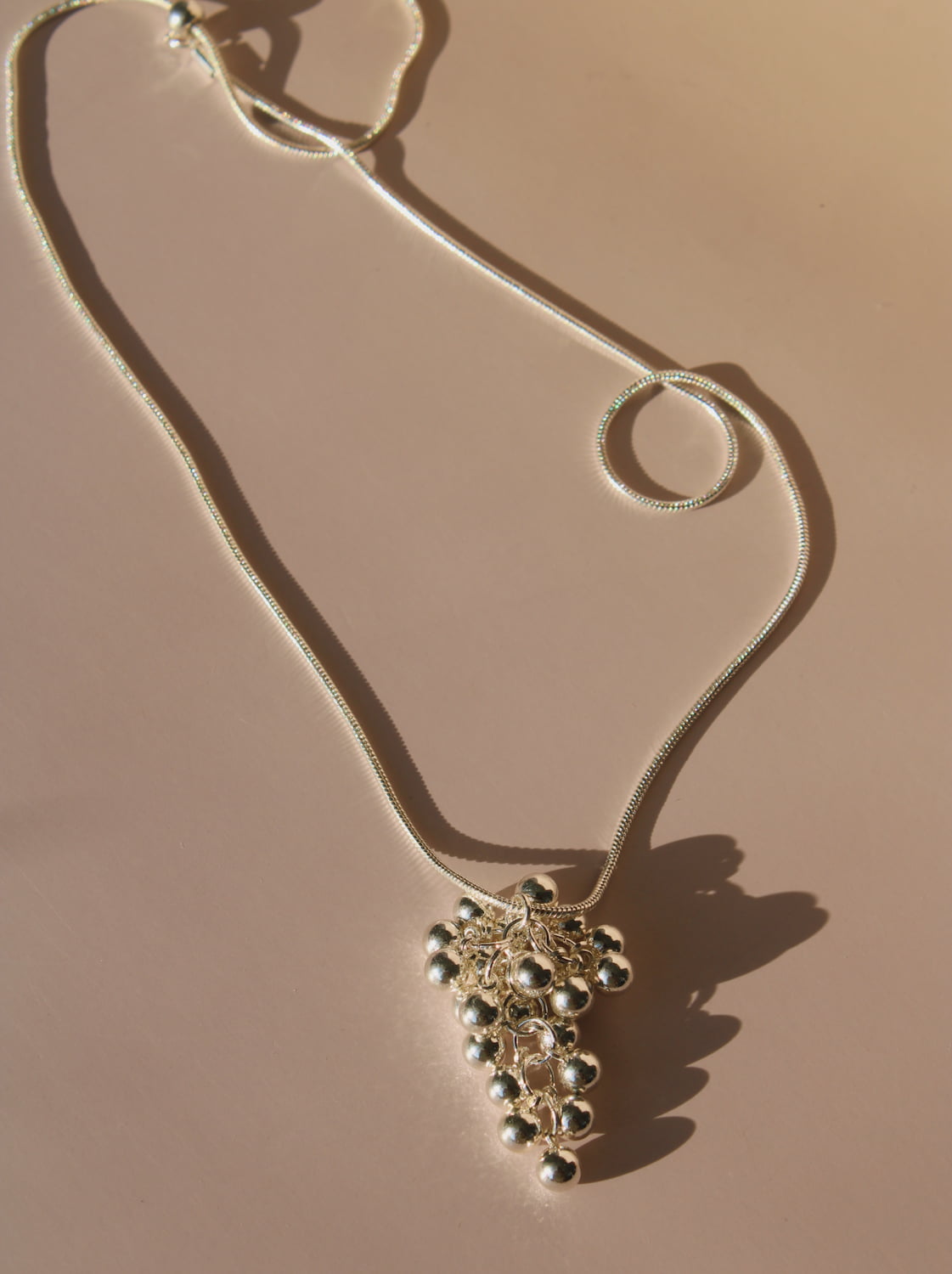 Inspirado nos delicados cachos de uvas maduras sob o sol do fim do verão, o Colar Uva traz um toque de elegância divertida ao seu visual do dia a dia. Feito em liga metálica de alta qualidade com acabamento prateado polido, seu design de contas em cascata captura a luz com beleza e se move suavemente com você.