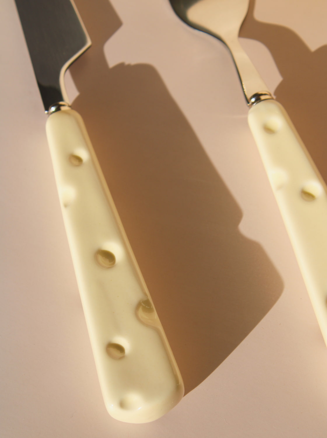 Alba Cheese Cutlery Set är där tidlöst hantverk möter enkel underhållande. Med sin eleganta siluett och raffinerade detaljer är detta tredelade set designat för att lyfta varje ostbräde — från enkla picknickar till sofistikerade sammankomster.