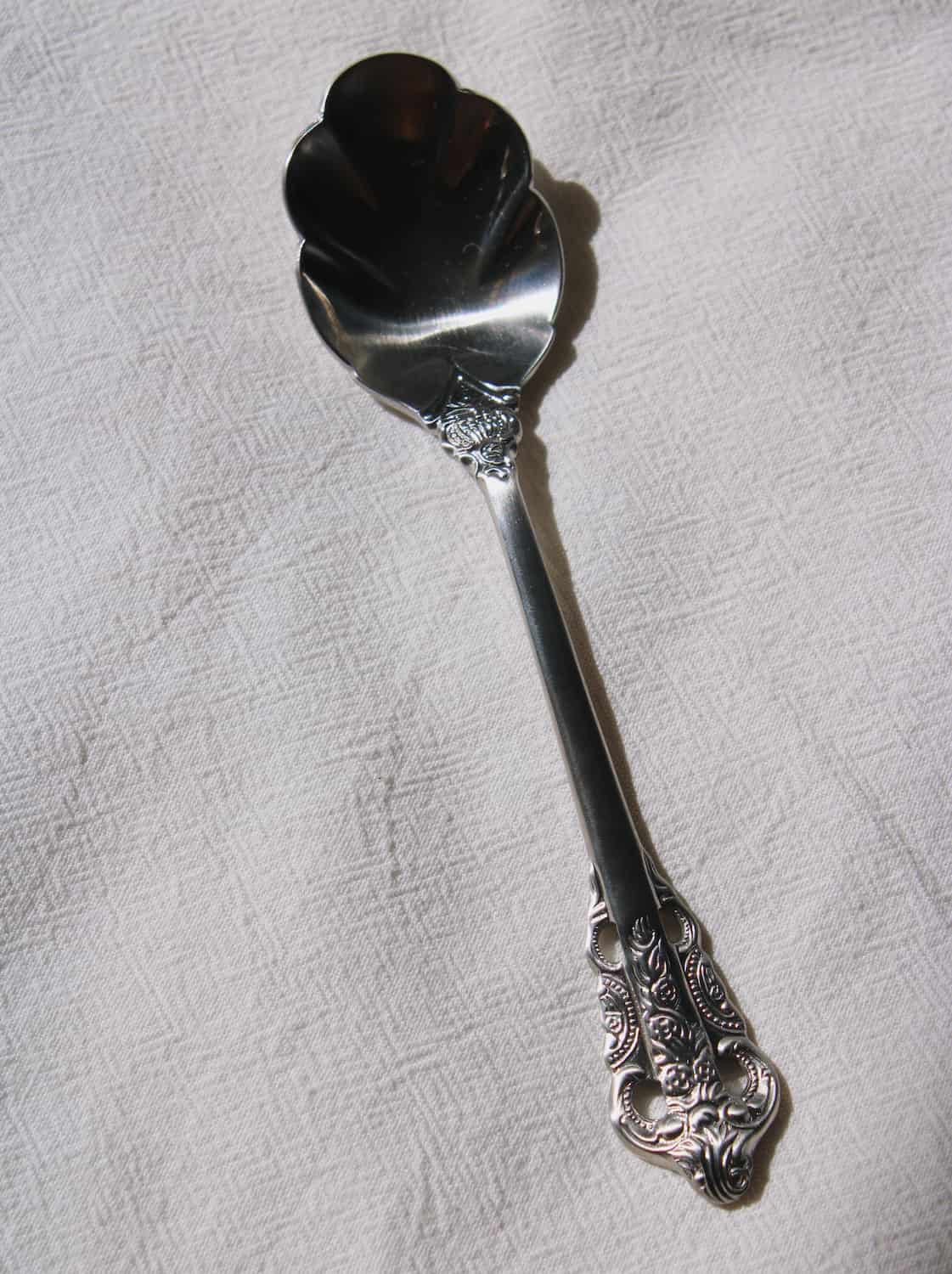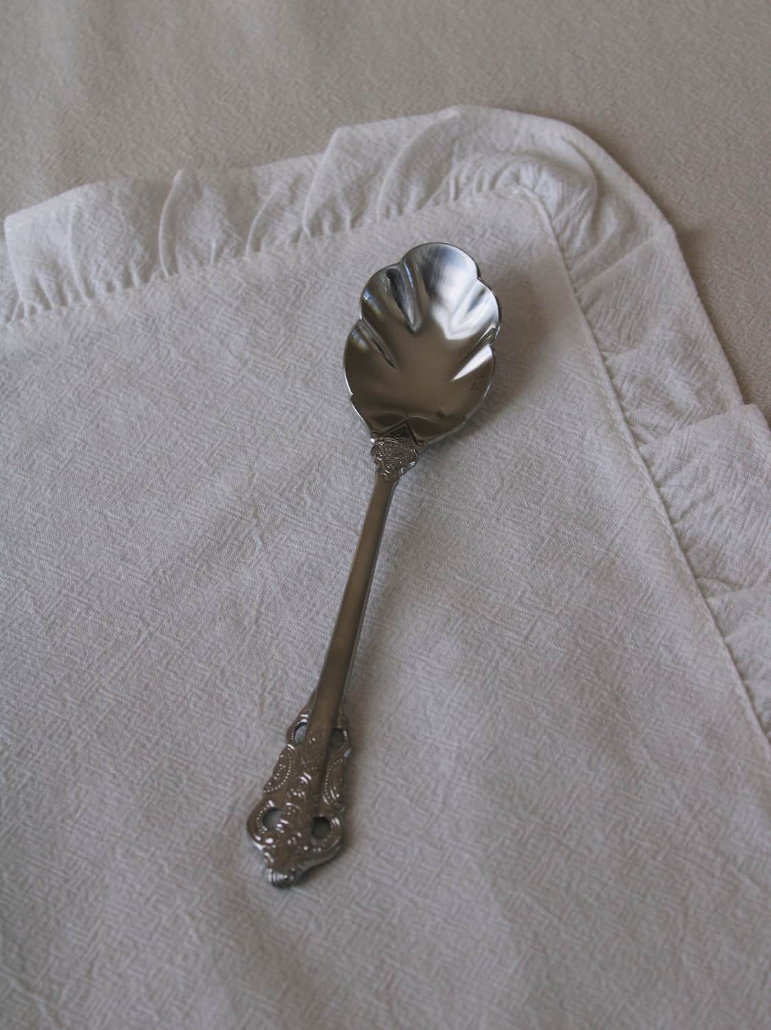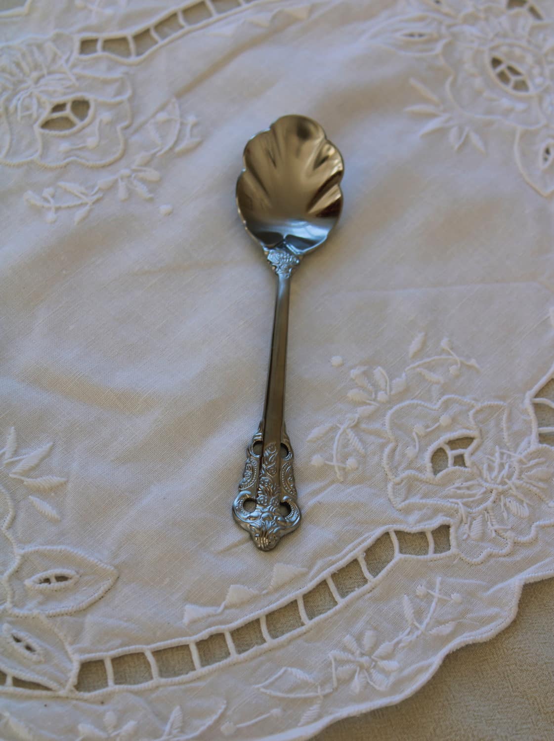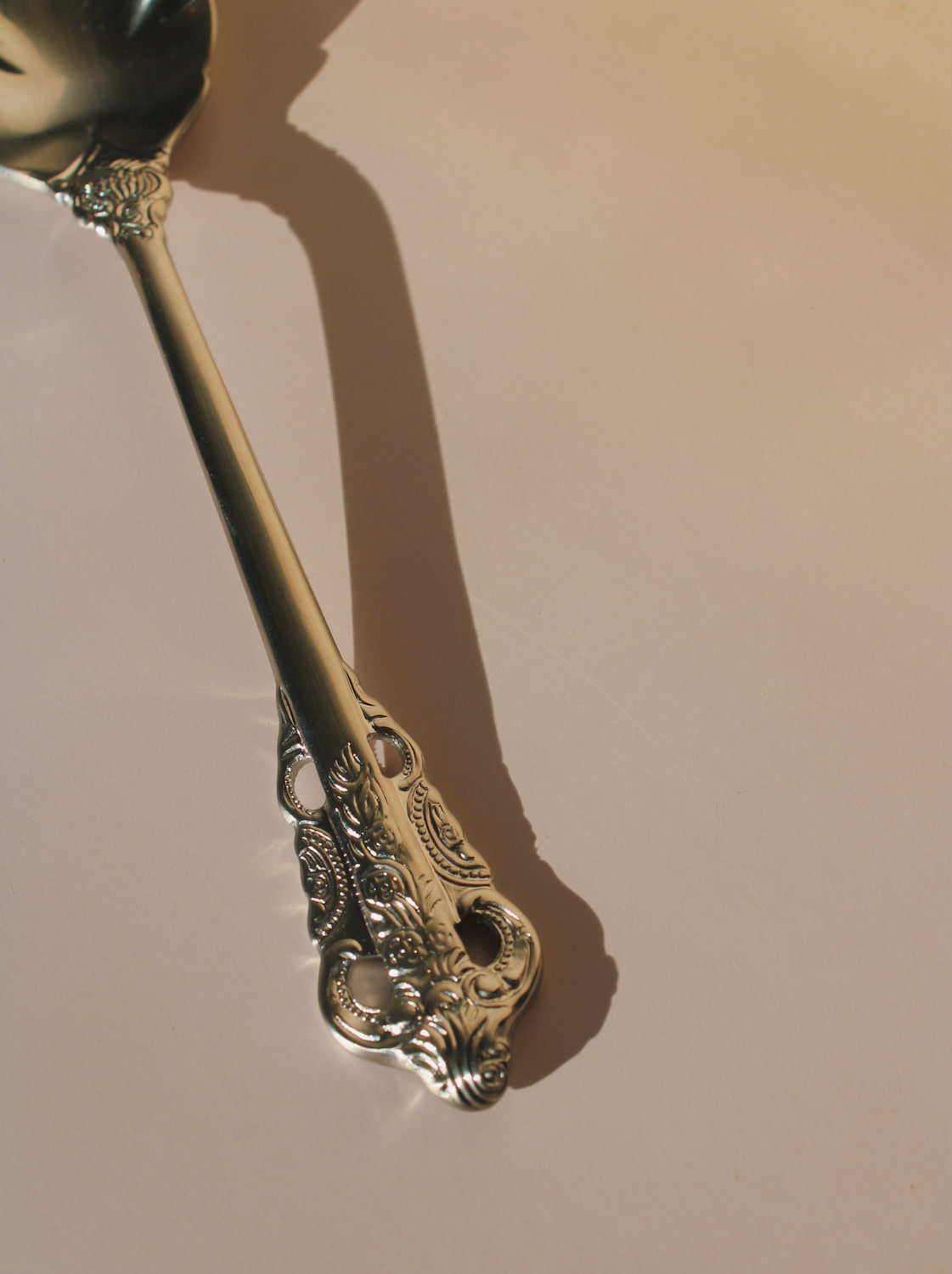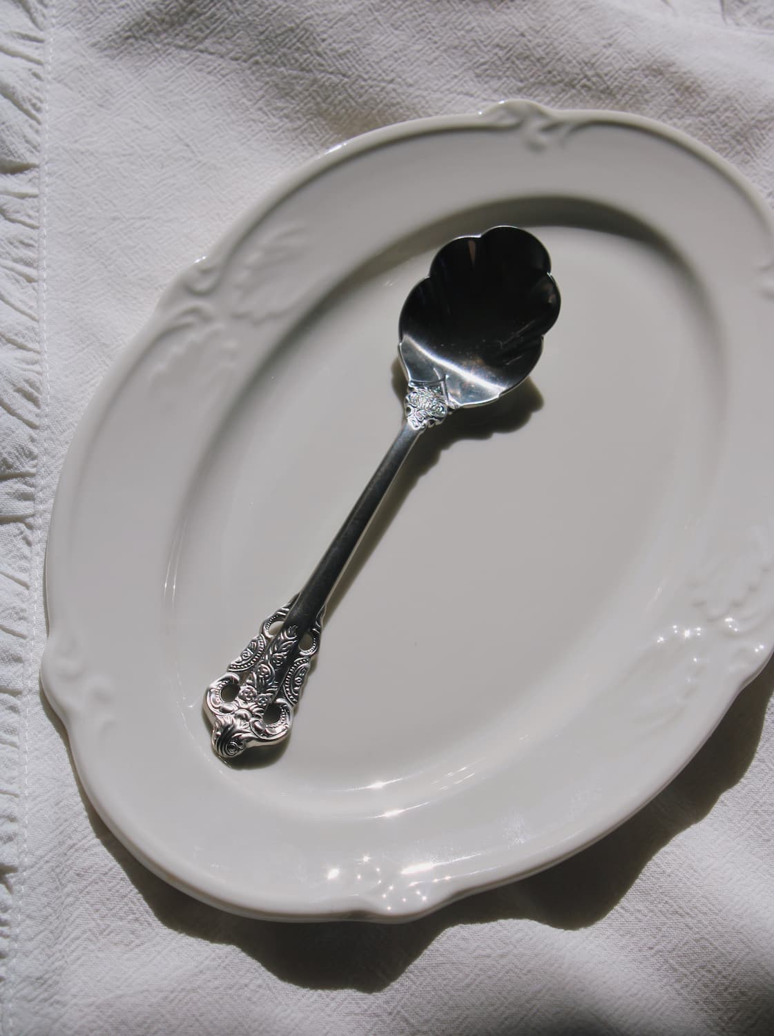 Nerida-skeden ger en touch av oceanisk poesi till bordet - dess skalliknande form och graciösa kurvor som påminner om havsskatter som finns längs stranden. Tillverkad av förstklassigt rostfritt stål, denna sällsynta vintagepjäs blandar funktion med tyst elegans, perfekt för att servera desserter, kryddor eller helt enkelt lyfta dina dagliga ritualer.