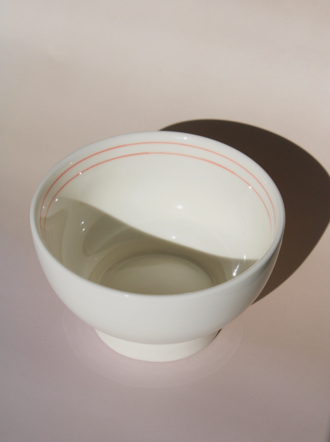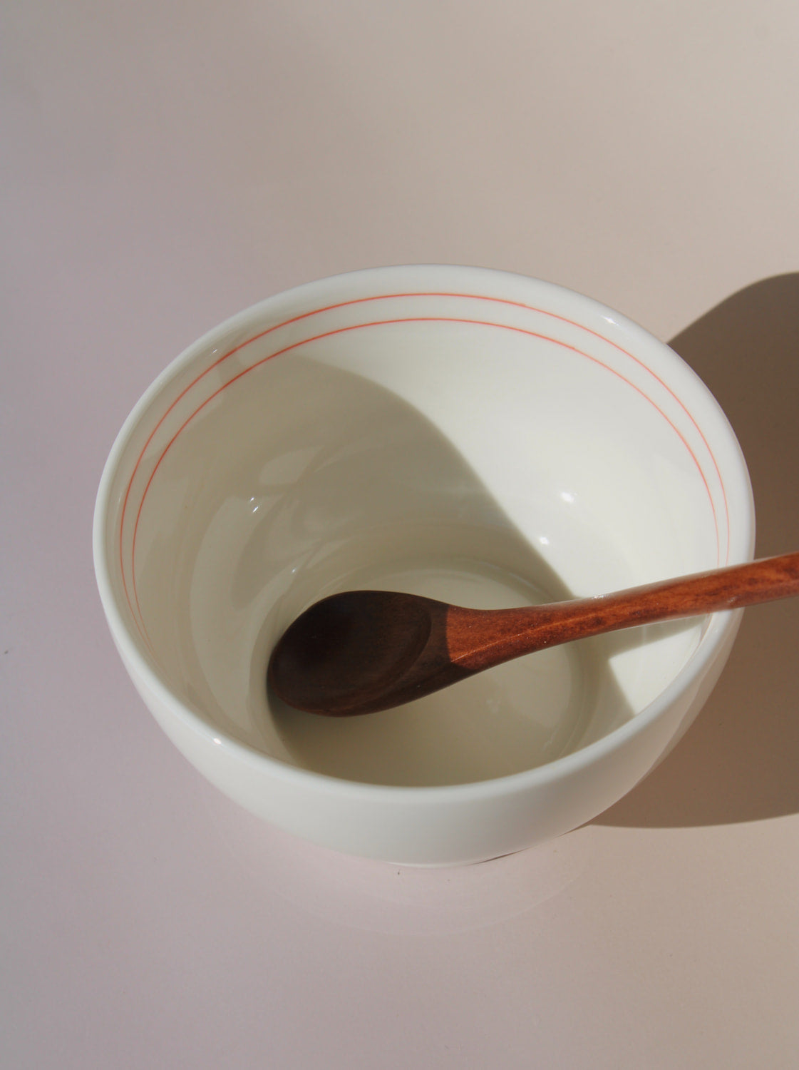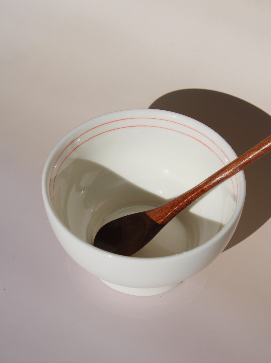 Nori-skålen, med en diameter på 11 cm och en höjd på 6,3 cm, har en kapacitet på cirka 330 ml — perfekt för soppor, snacks eller desserter. Dess rena, moderna form tillsammans med mjuka röda randiga detaljer ger en tyst karaktär till alla dukning. Nori Bowl är utformad för att balansera hantverksmässig charm med vardagspraktik och passar sömlöst in i både avslappnade måltider och mer raffinerade middagsstunder.