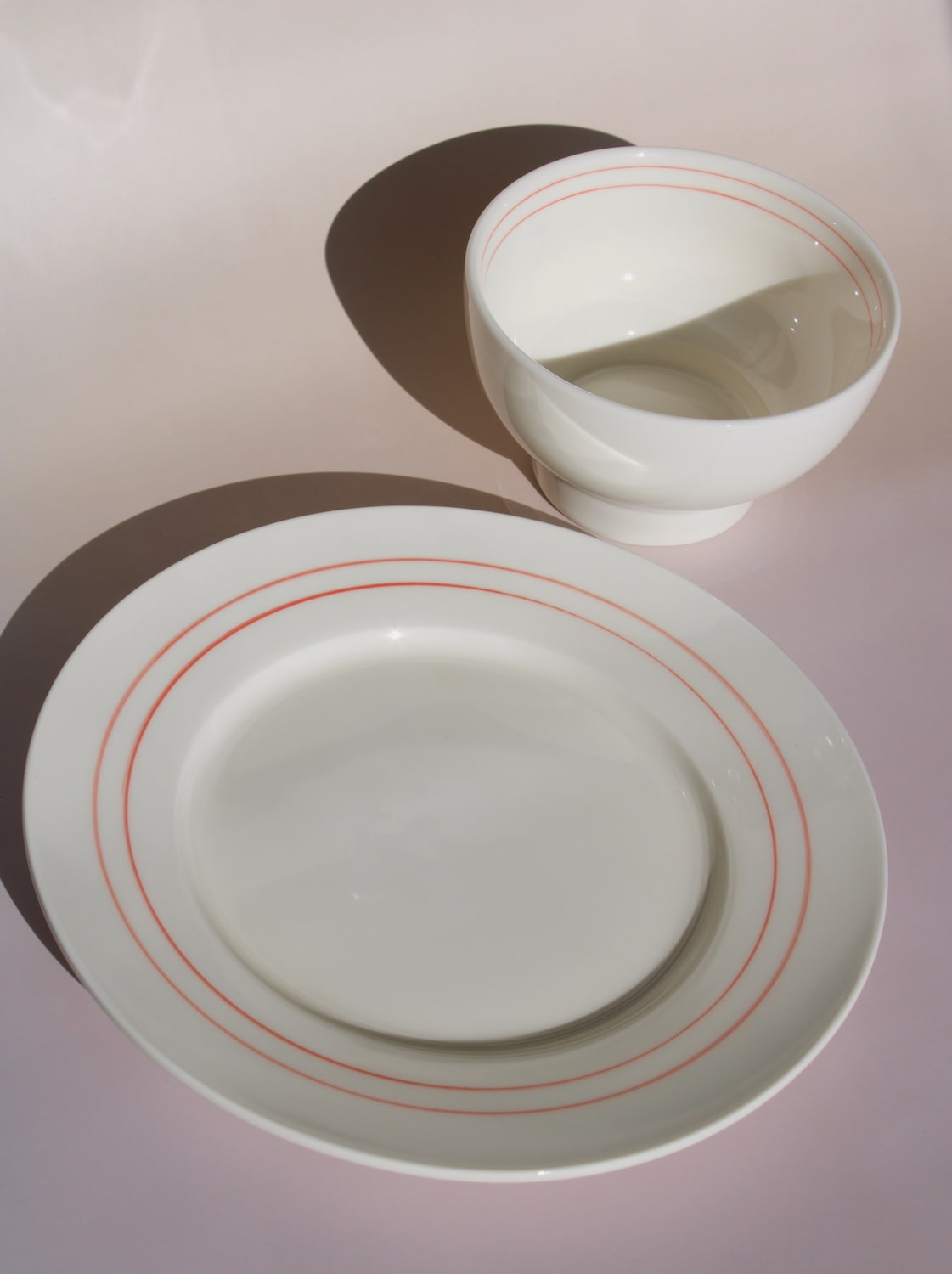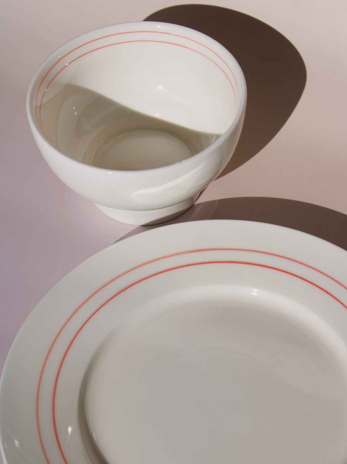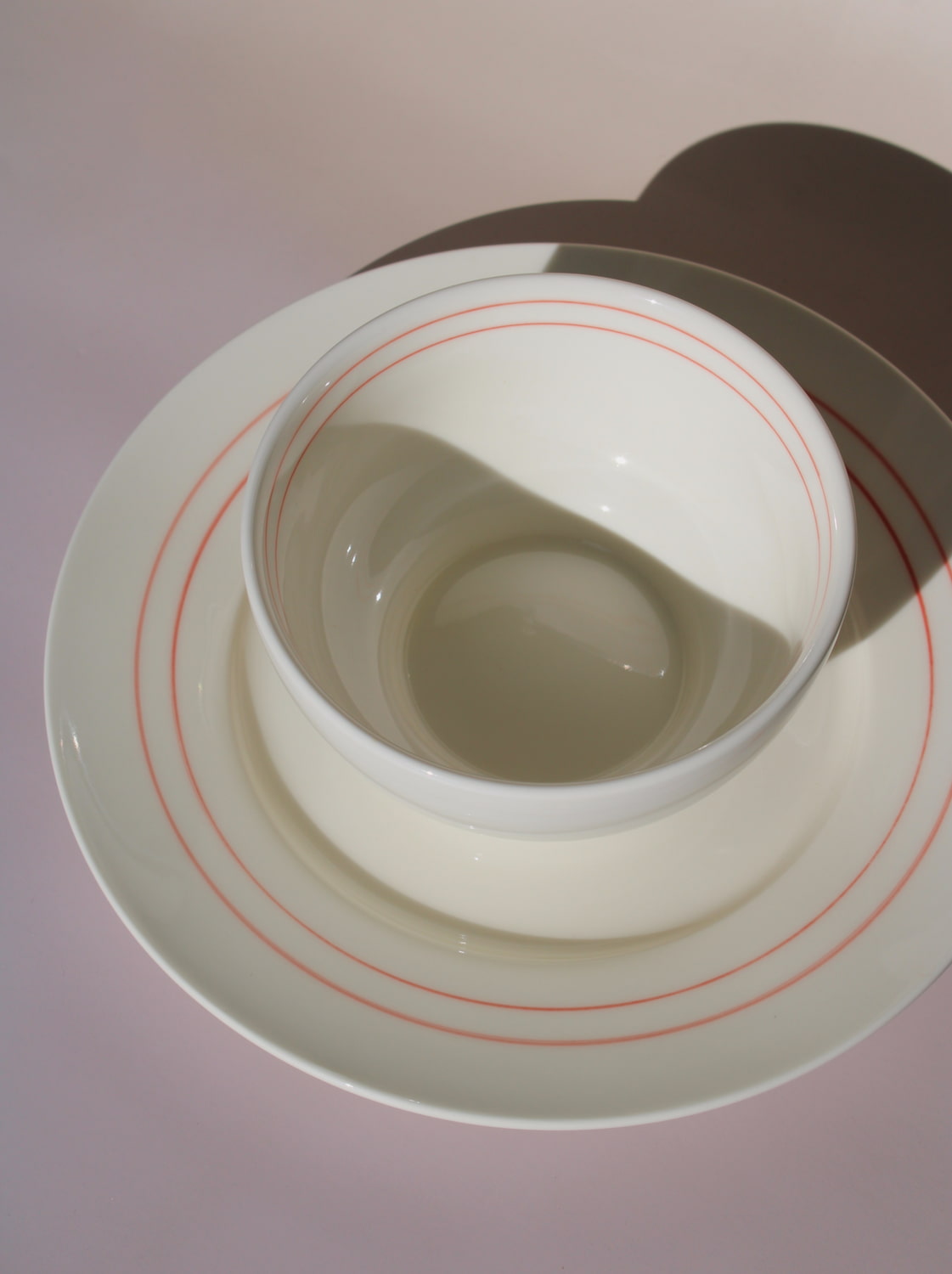 Nori-skålen, med en diameter på 11 cm och en höjd på 6,3 cm, har en kapacitet på cirka 330 ml — perfekt för soppor, snacks eller desserter. Dess rena, moderna form tillsammans med mjuka röda randiga detaljer ger en tyst karaktär till alla dukning. Nori Bowl är utformad för att balansera hantverksmässig charm med vardagspraktik och passar sömlöst in i både avslappnade måltider och mer raffinerade middagsstunder.