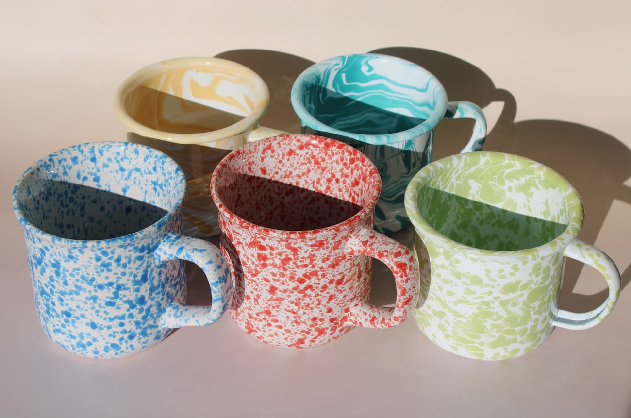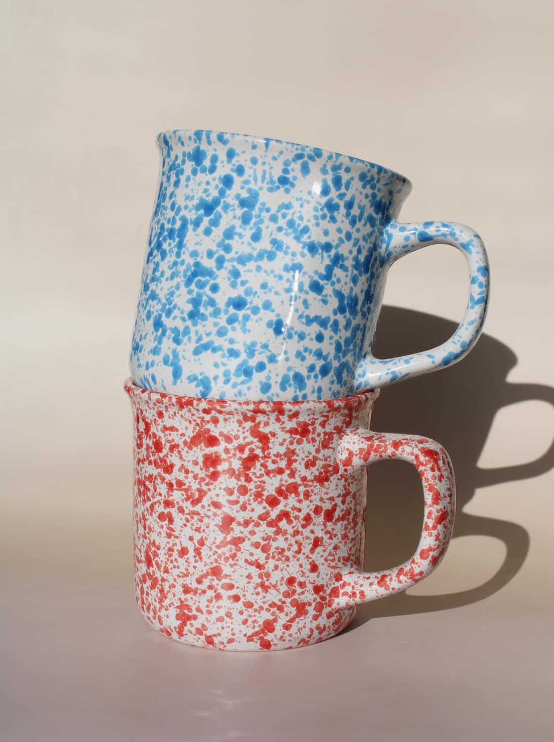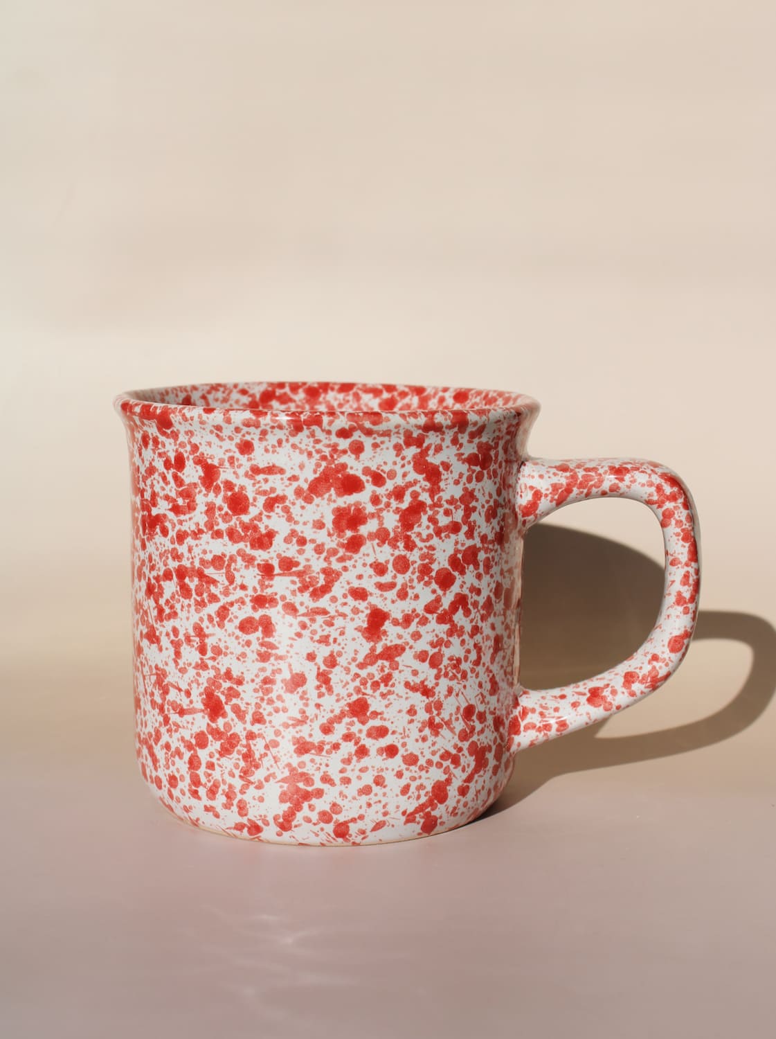 Djärv och uttrycksfull, Ruby-muggen visar upp ett dynamiskt rött stänkmönster som ger energi till din morgonritual. Varje pjäs är unik, med livfulla fläckar som skapar en konstnärlig komposition över den släta keramiska ytan. Denna hantverksgjorda mugg tillför passion och kreativitet till varje klunk.